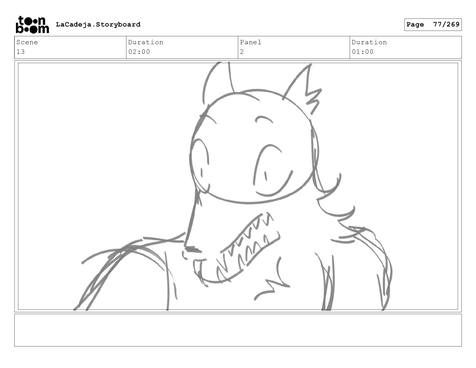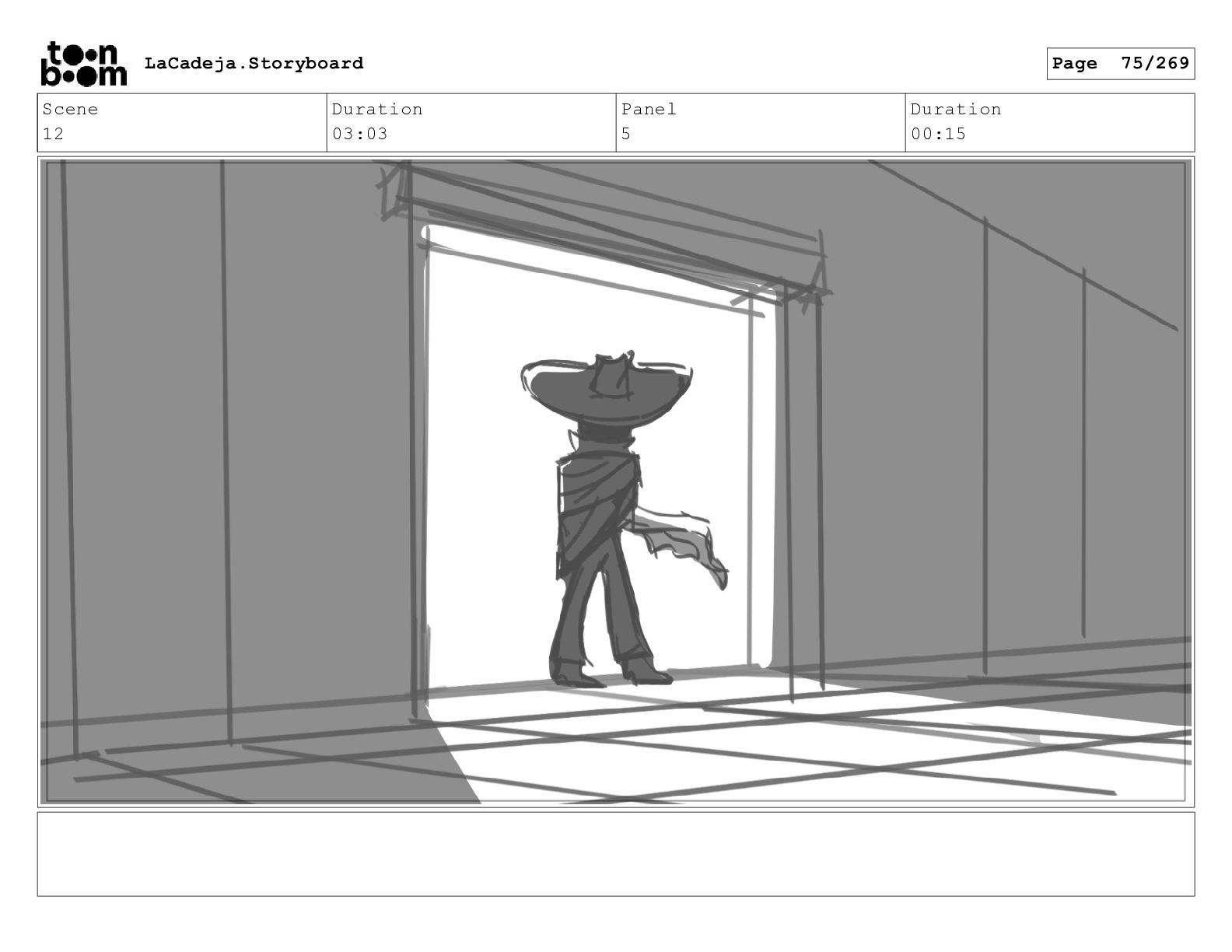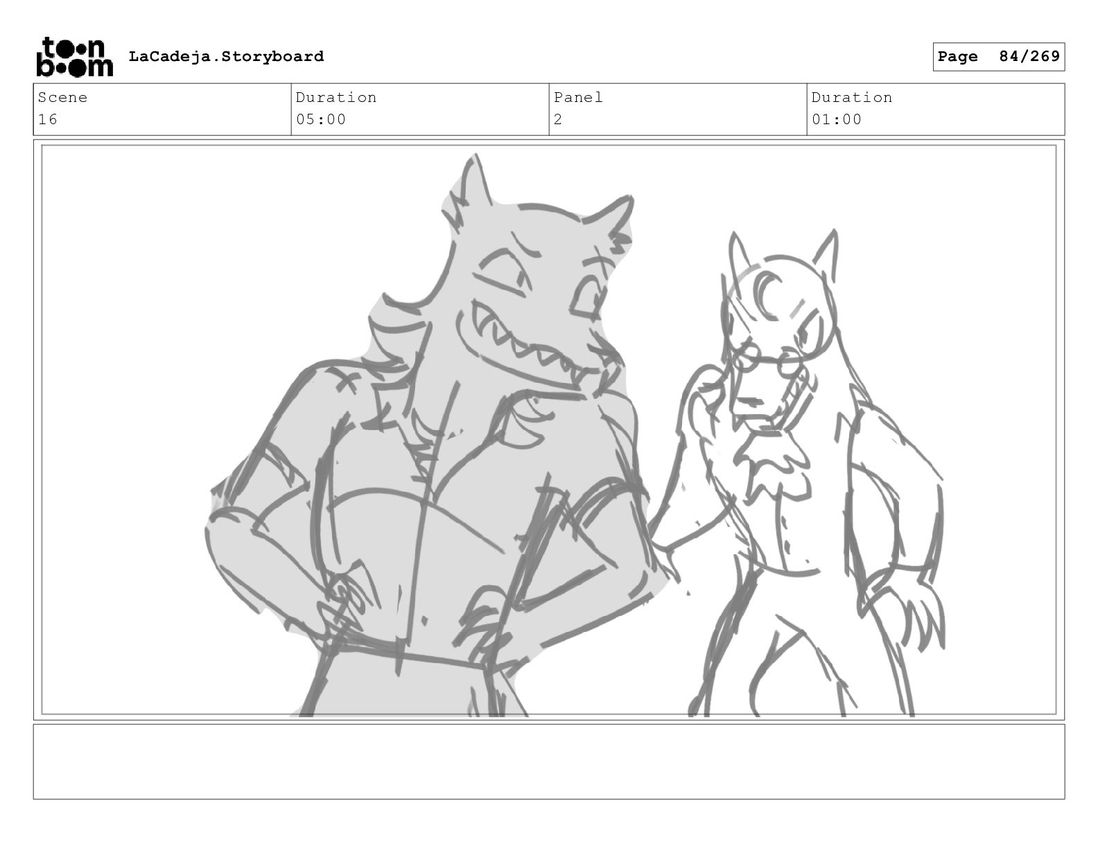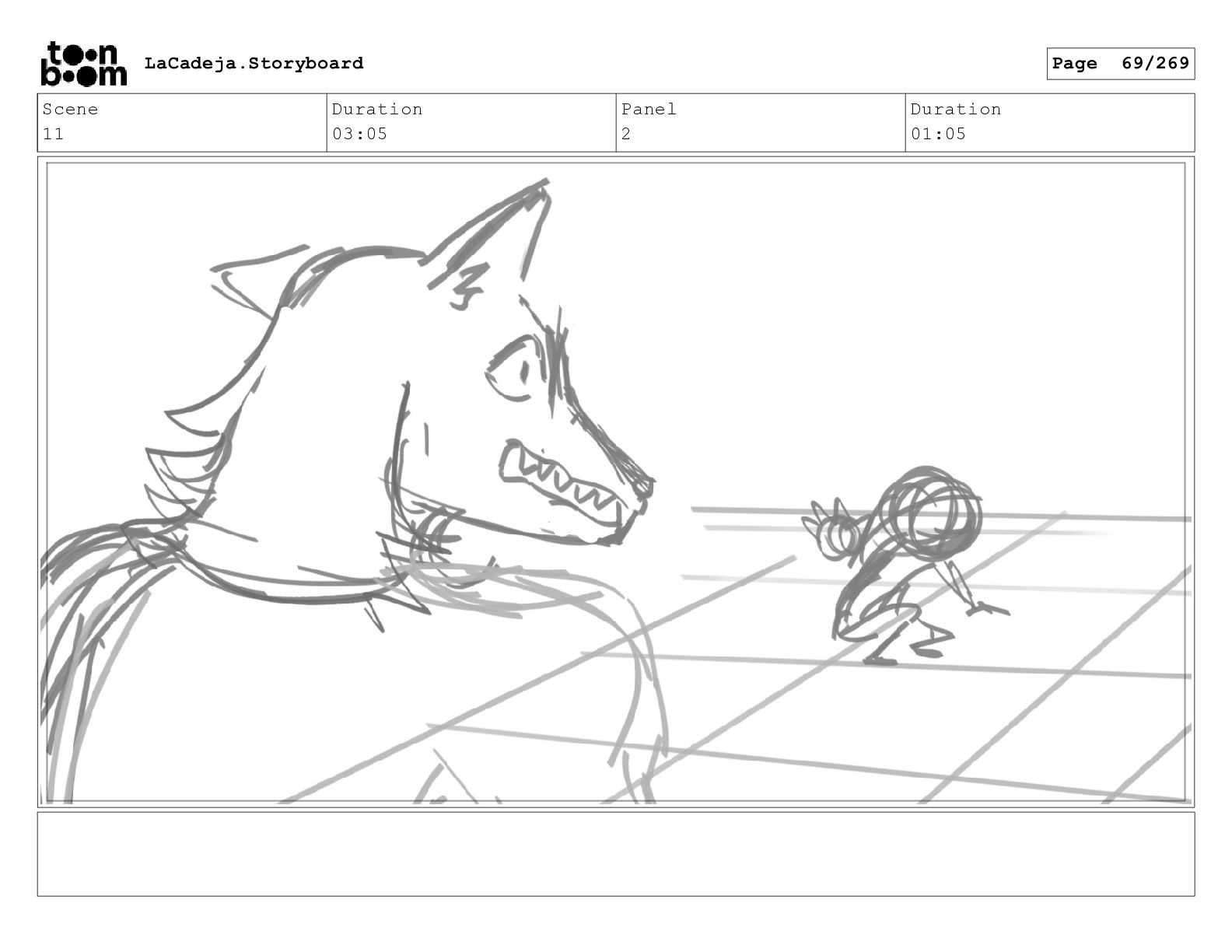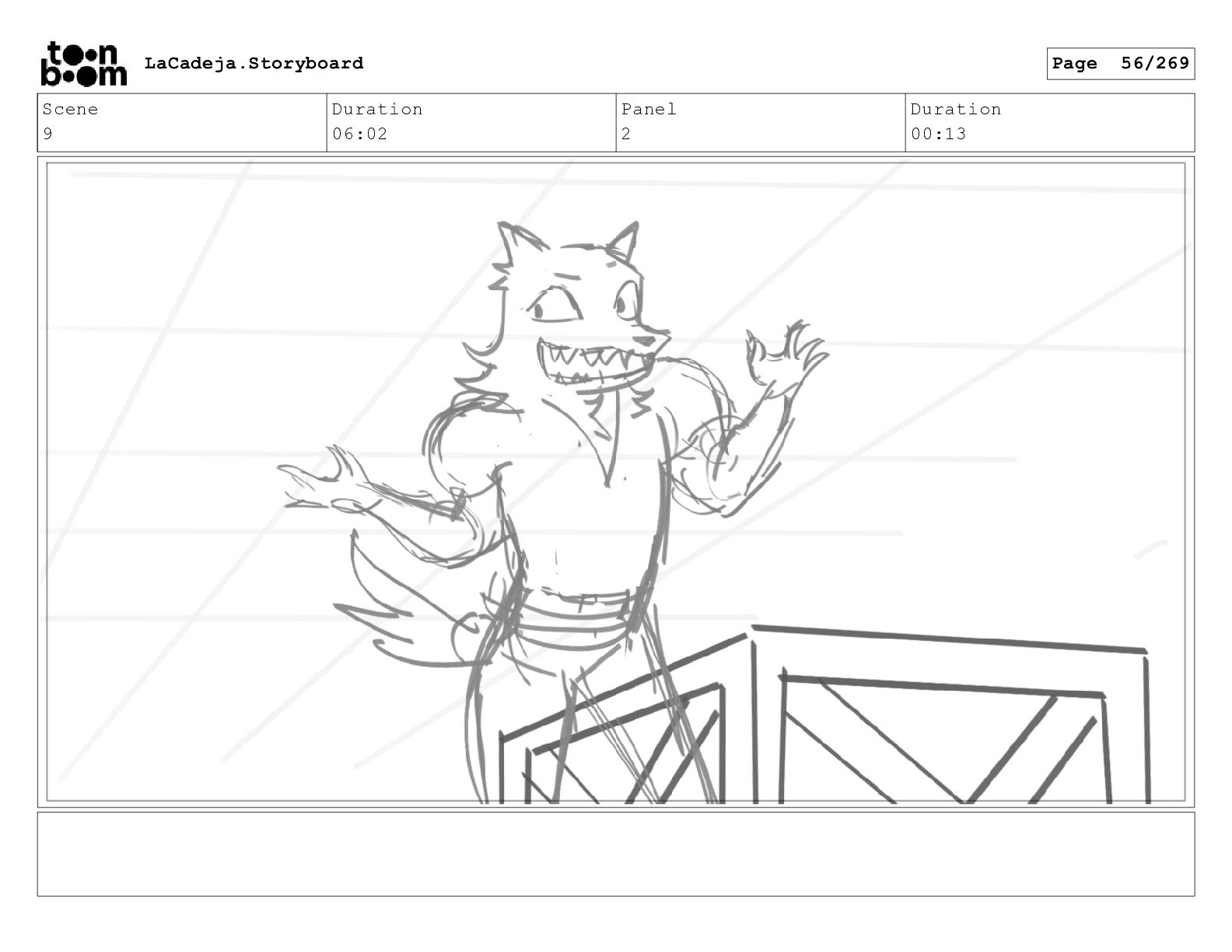 Scene 1 Duration 05:19 Panel 2 Duration 00:12 LaCadeja.Storyboard Page