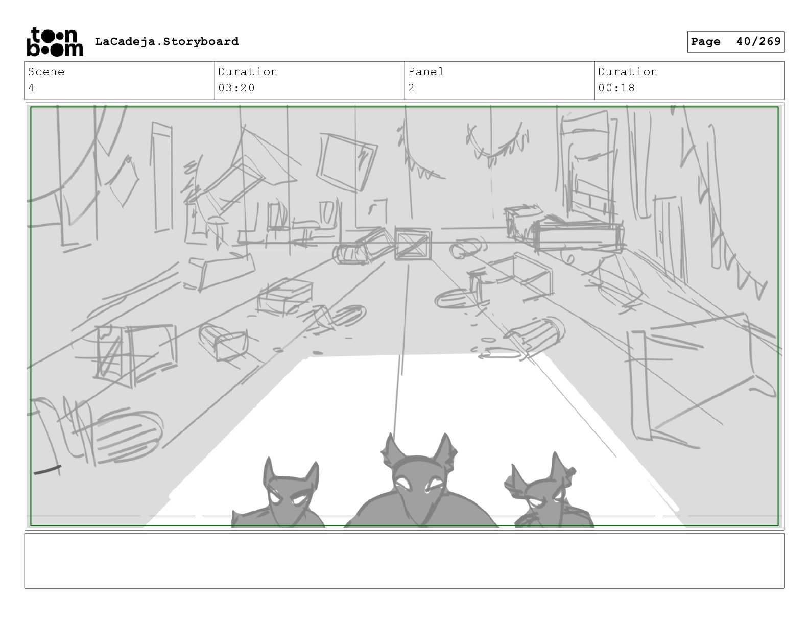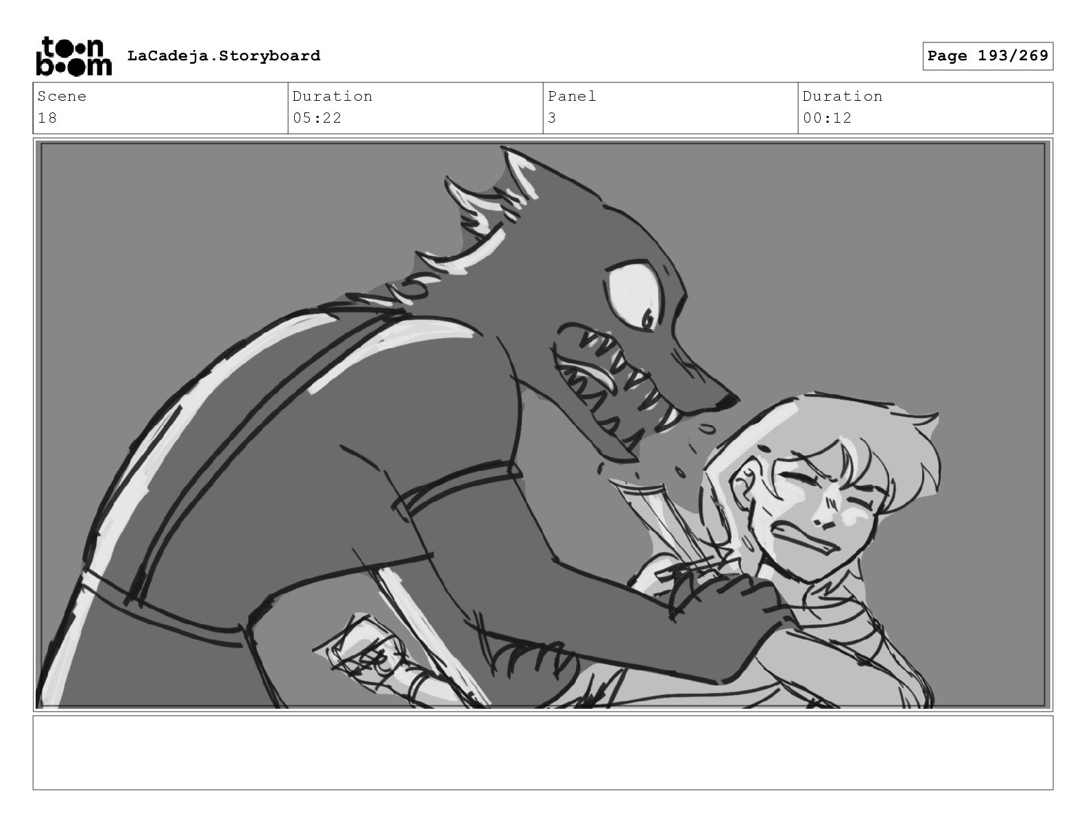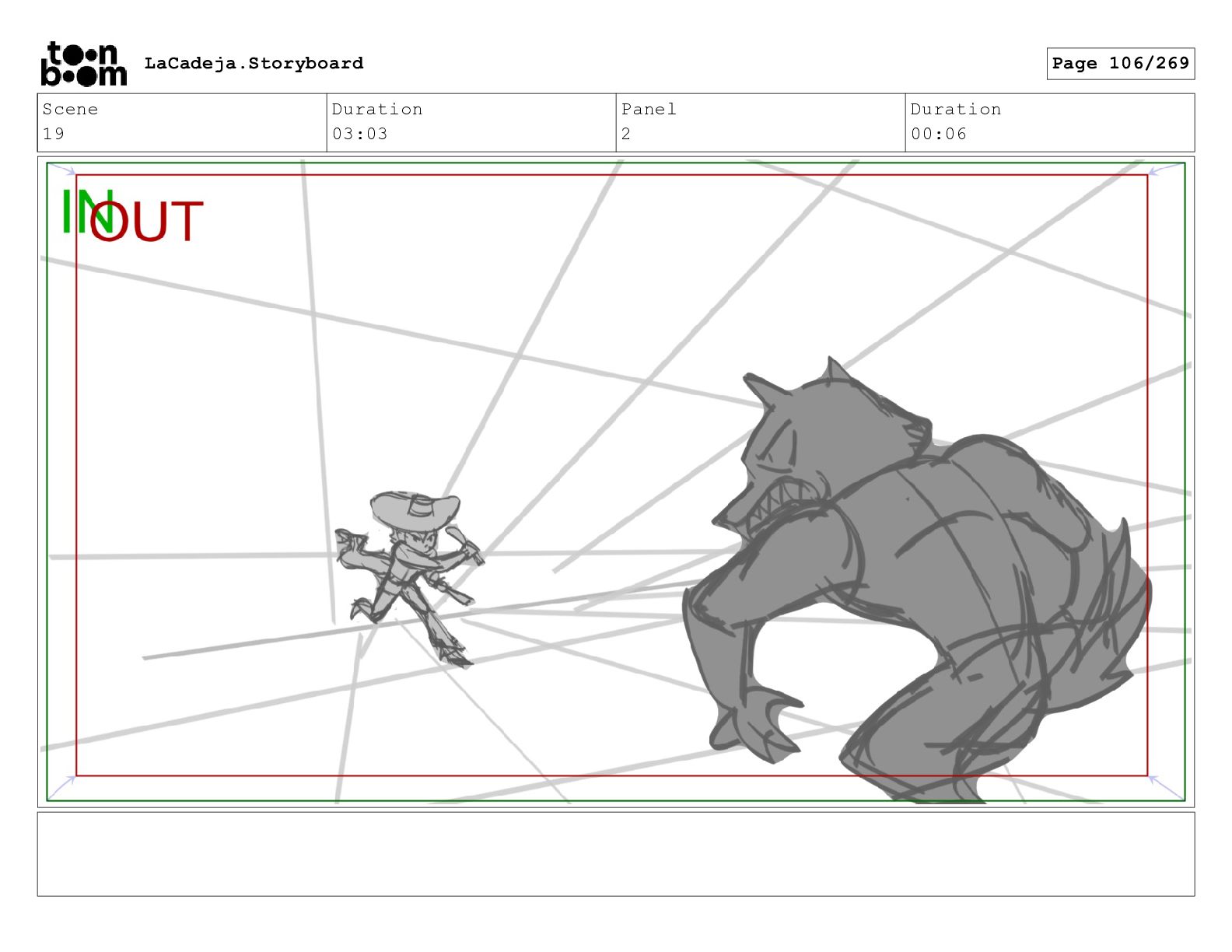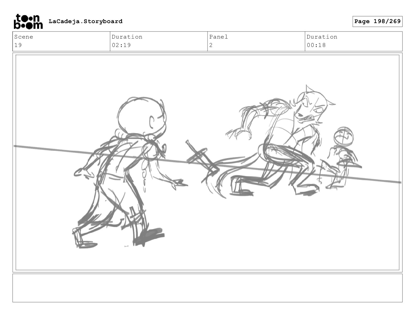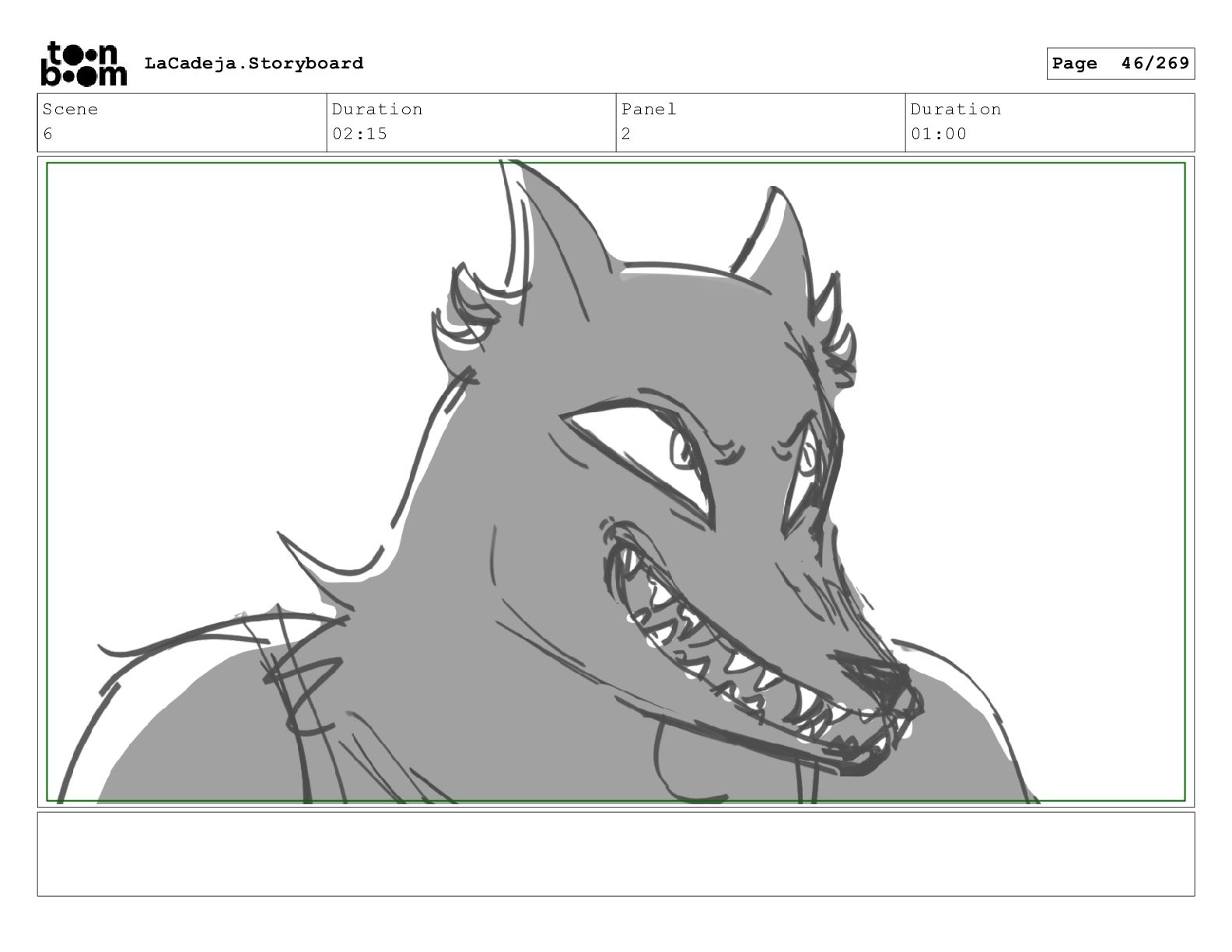 Scene 1 Duration 05:19 Panel 2 Duration 00:12 LaCadeja.Storyboard Page