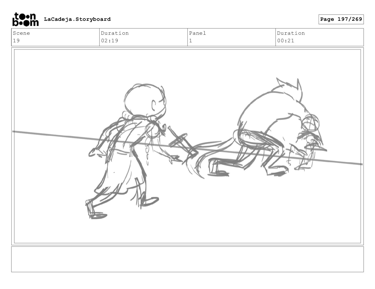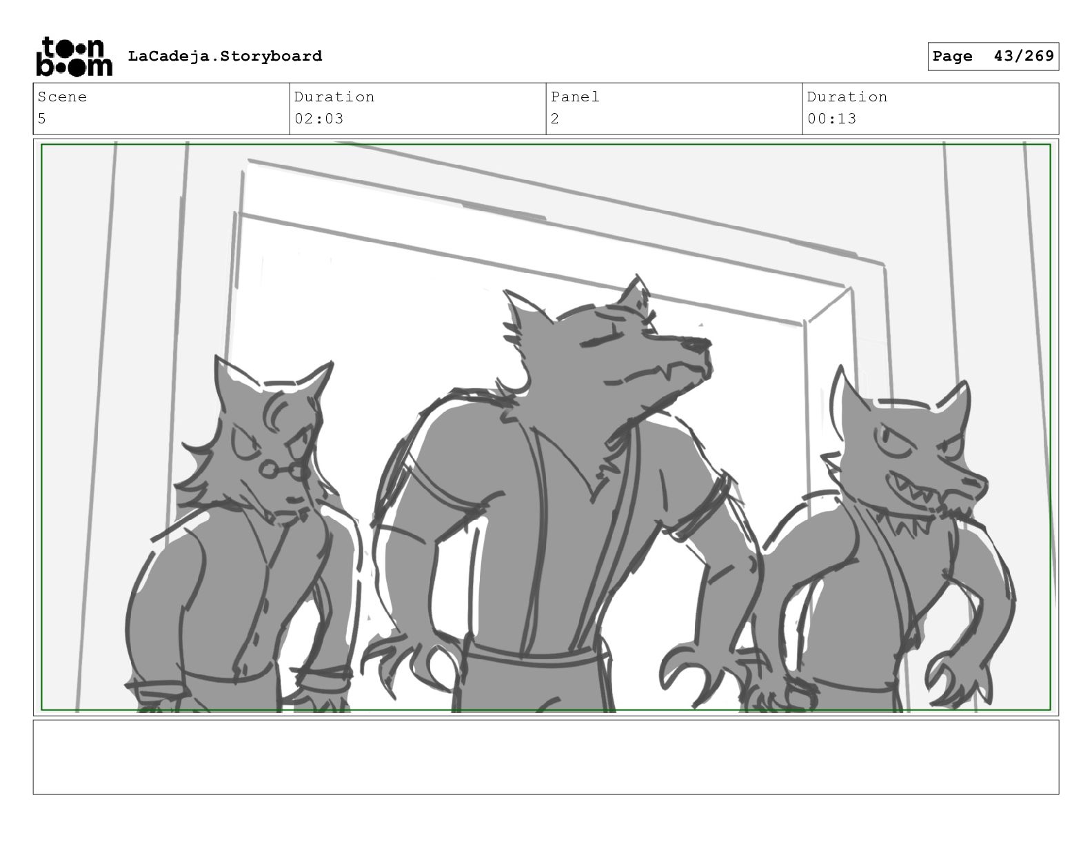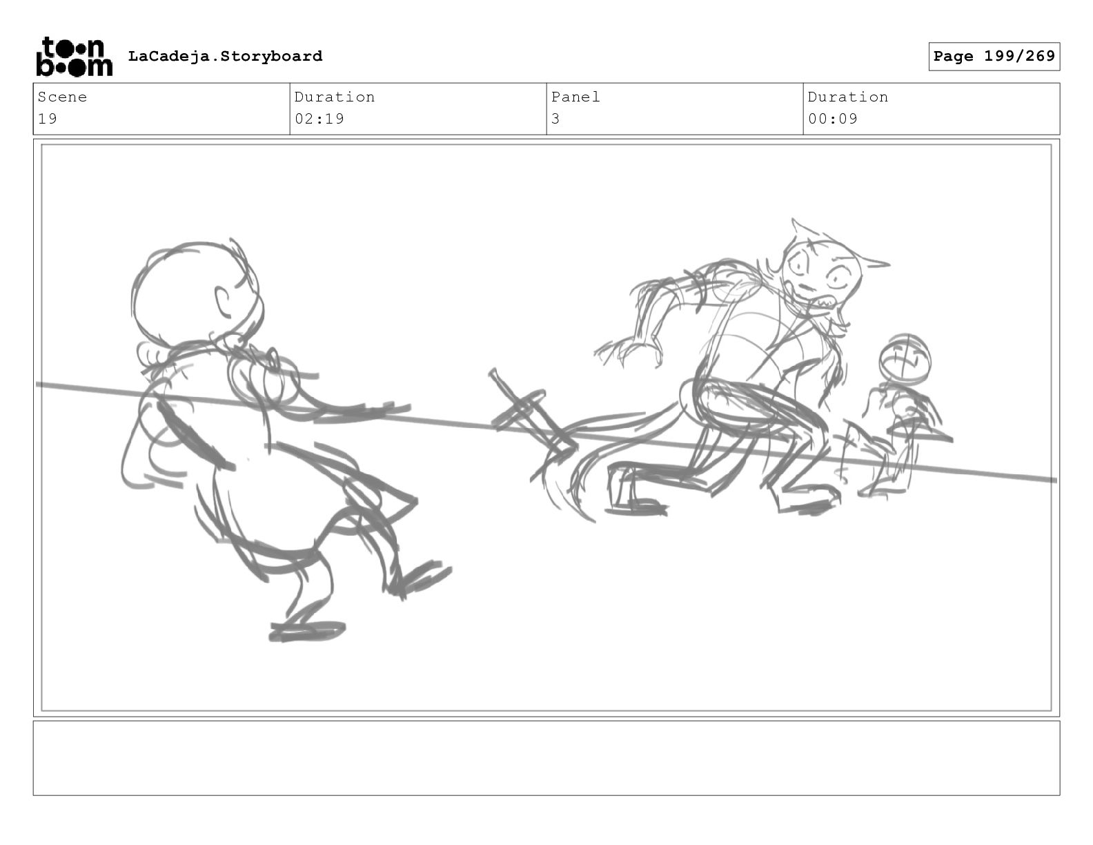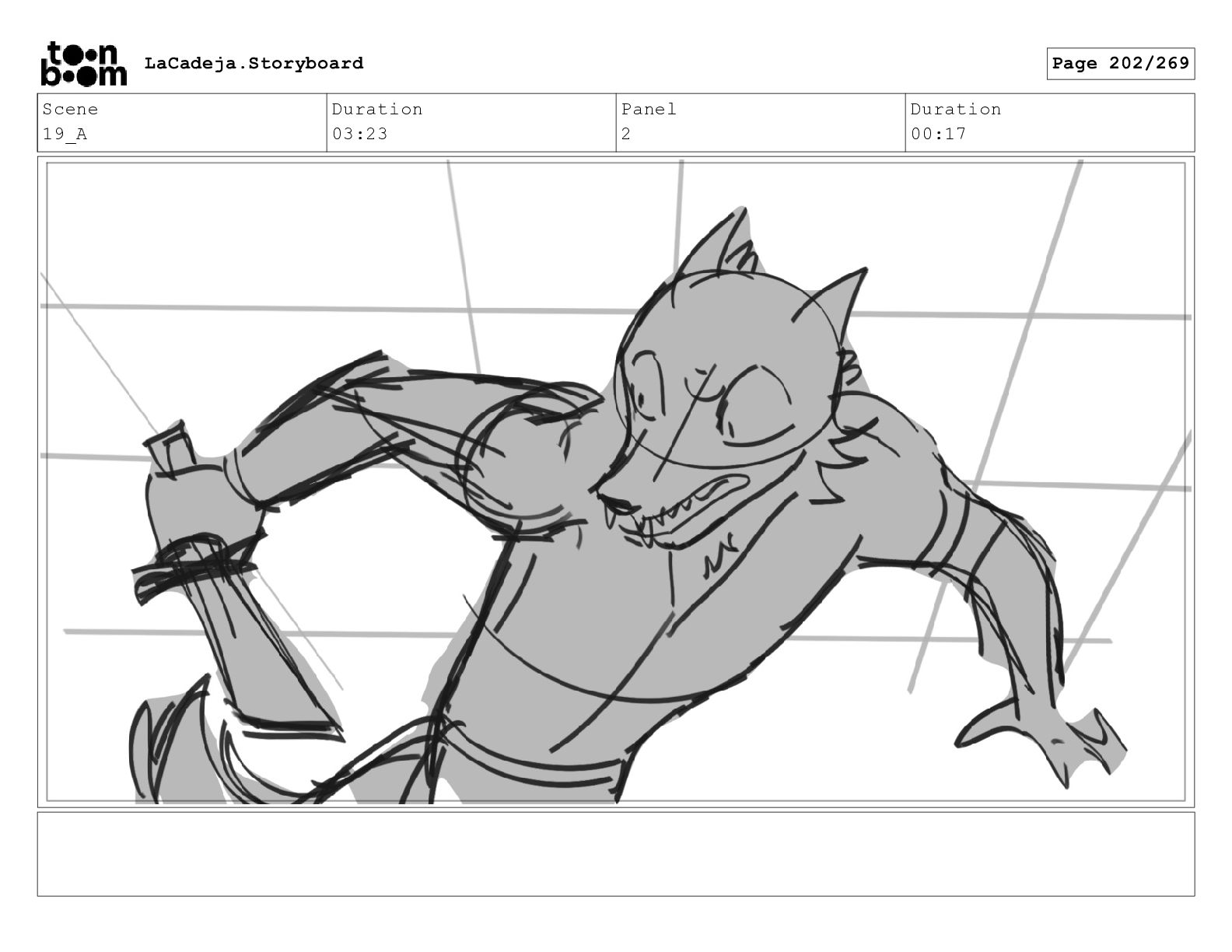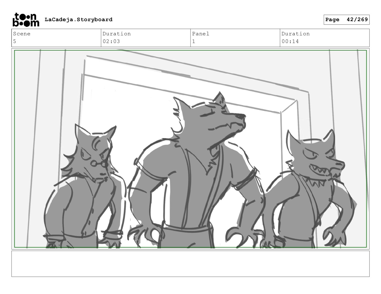 Scene 1 Duration 05:19 Panel 2 Duration 00:12 LaCadeja.Storyboard Page