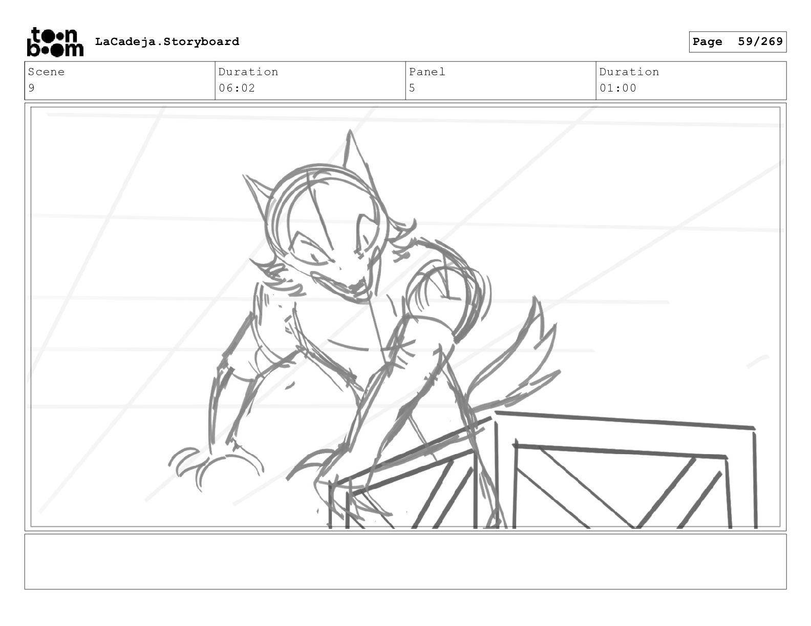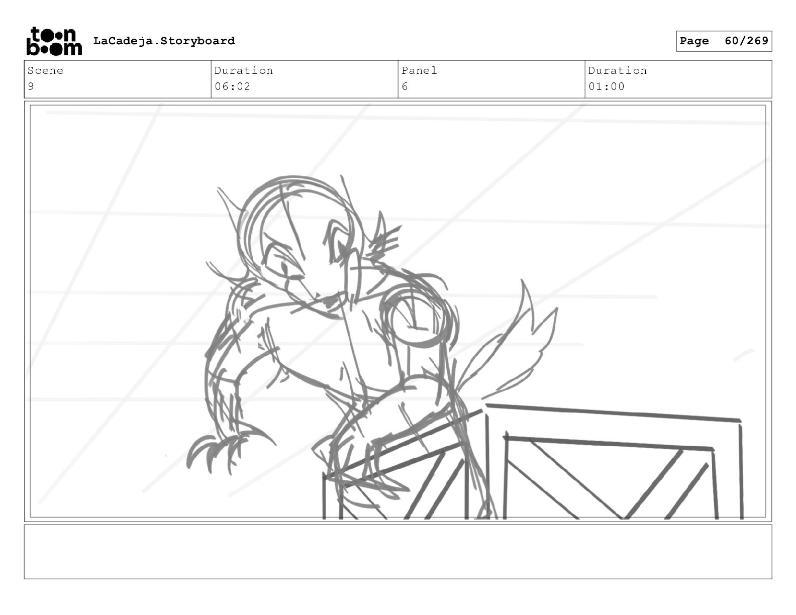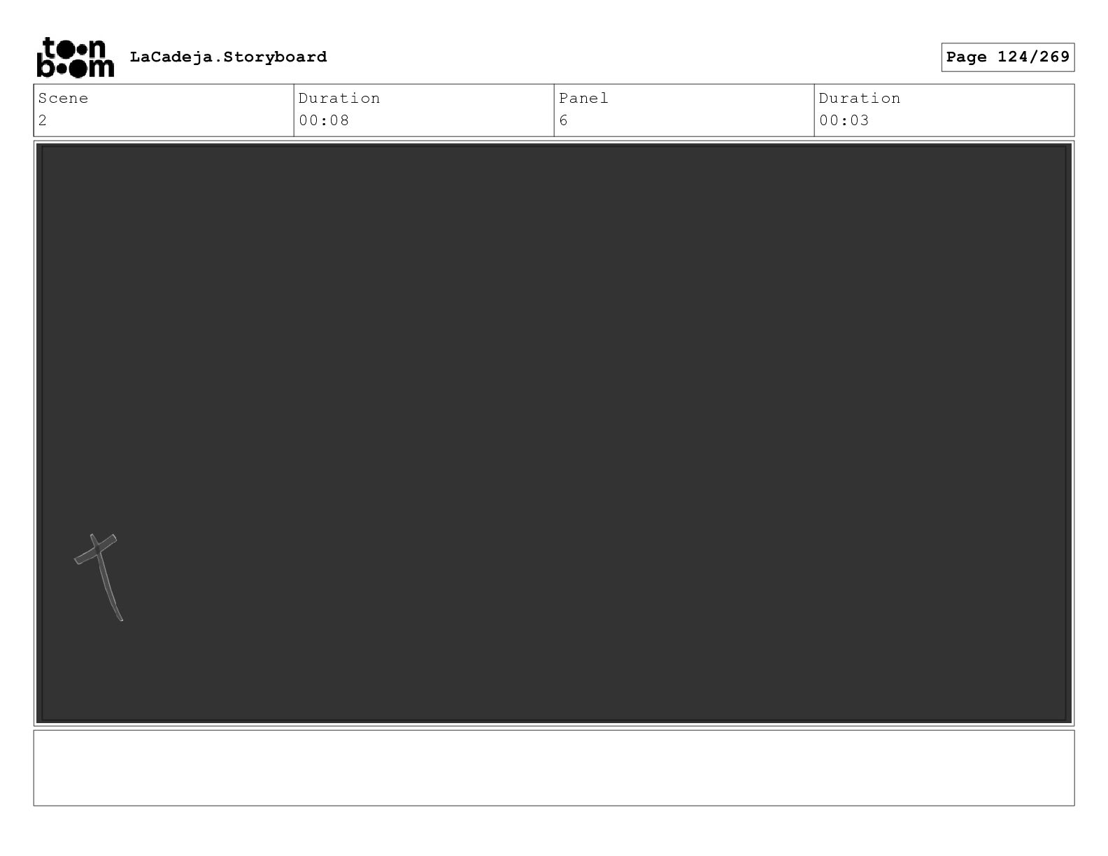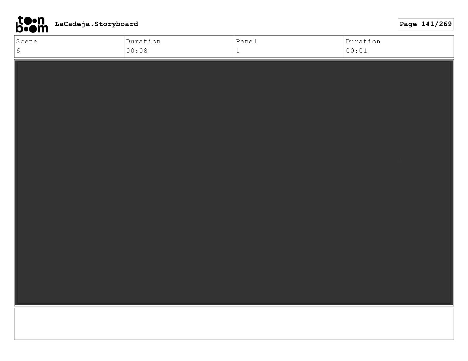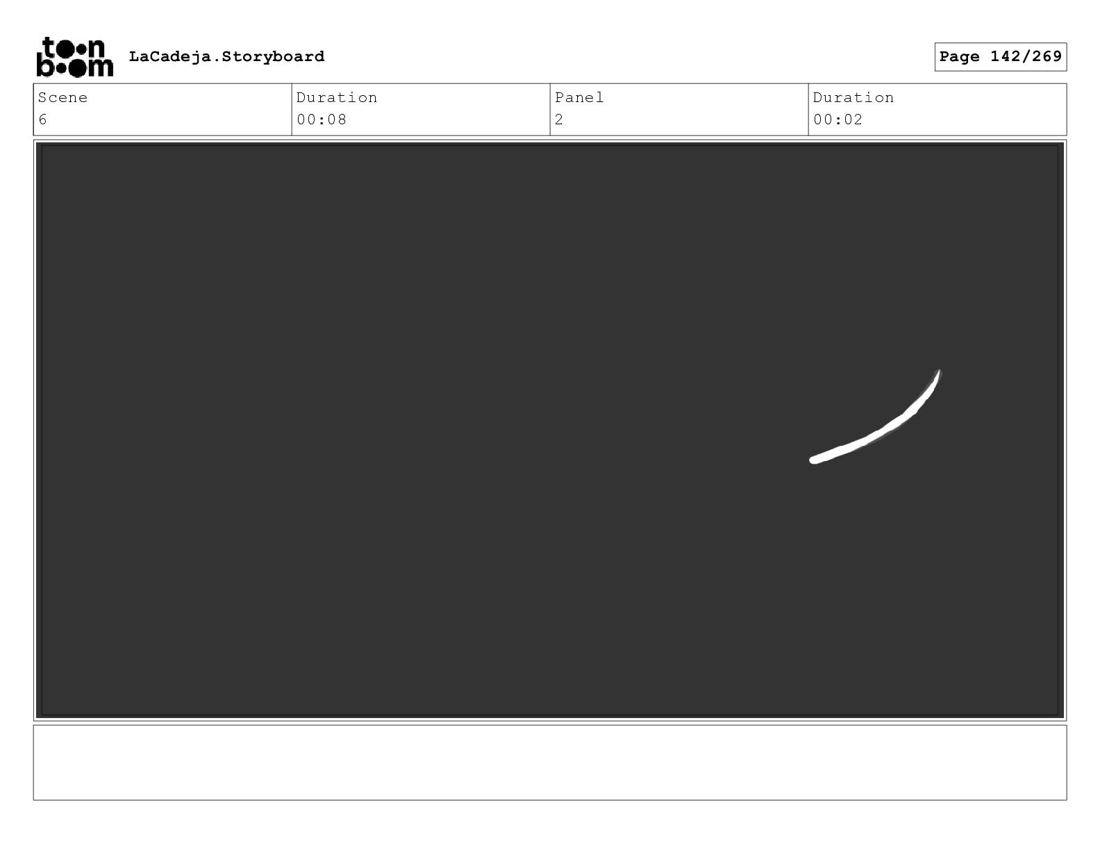 Scene 1 Duration 05:19 Panel 6 Duration 00:08 LaCadeja.Storyboard Page