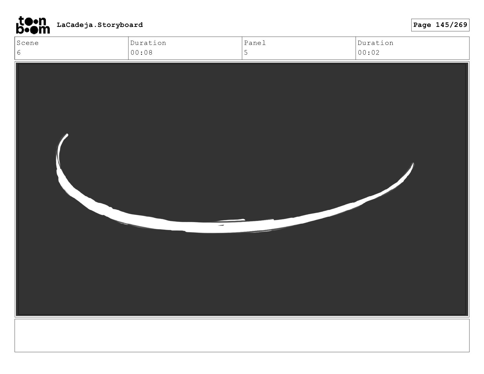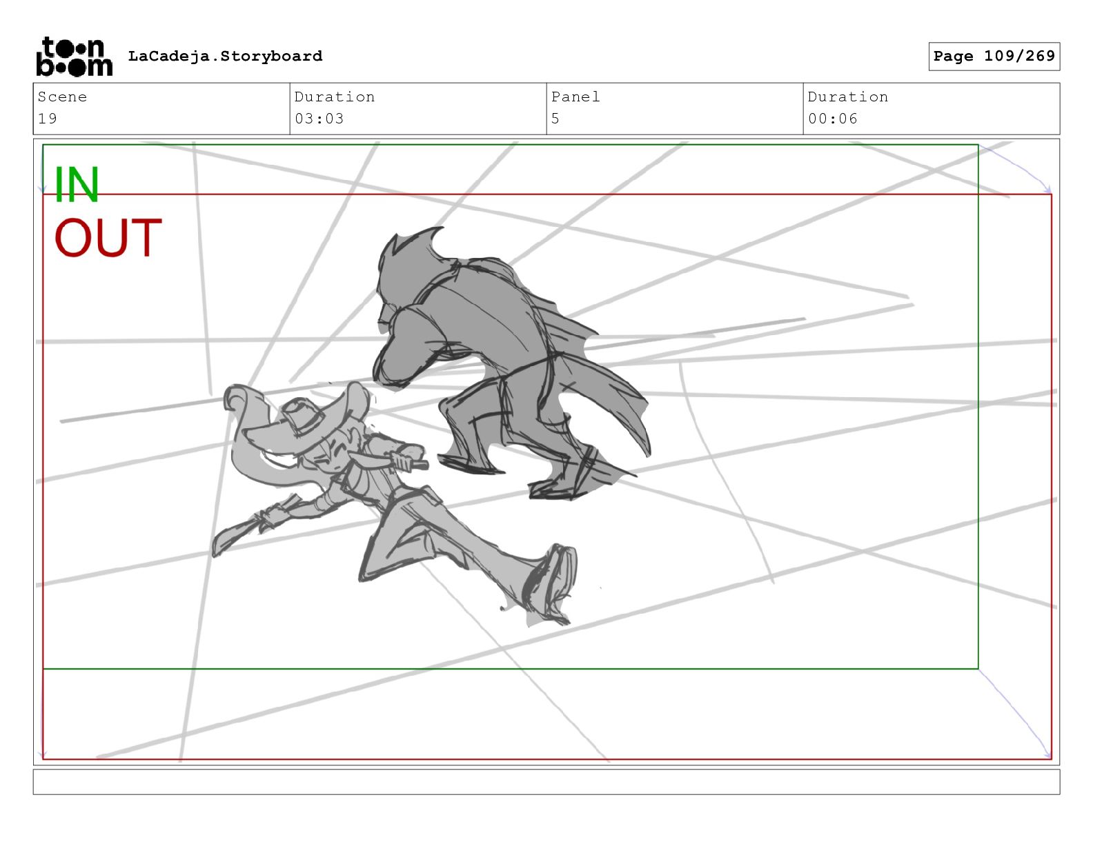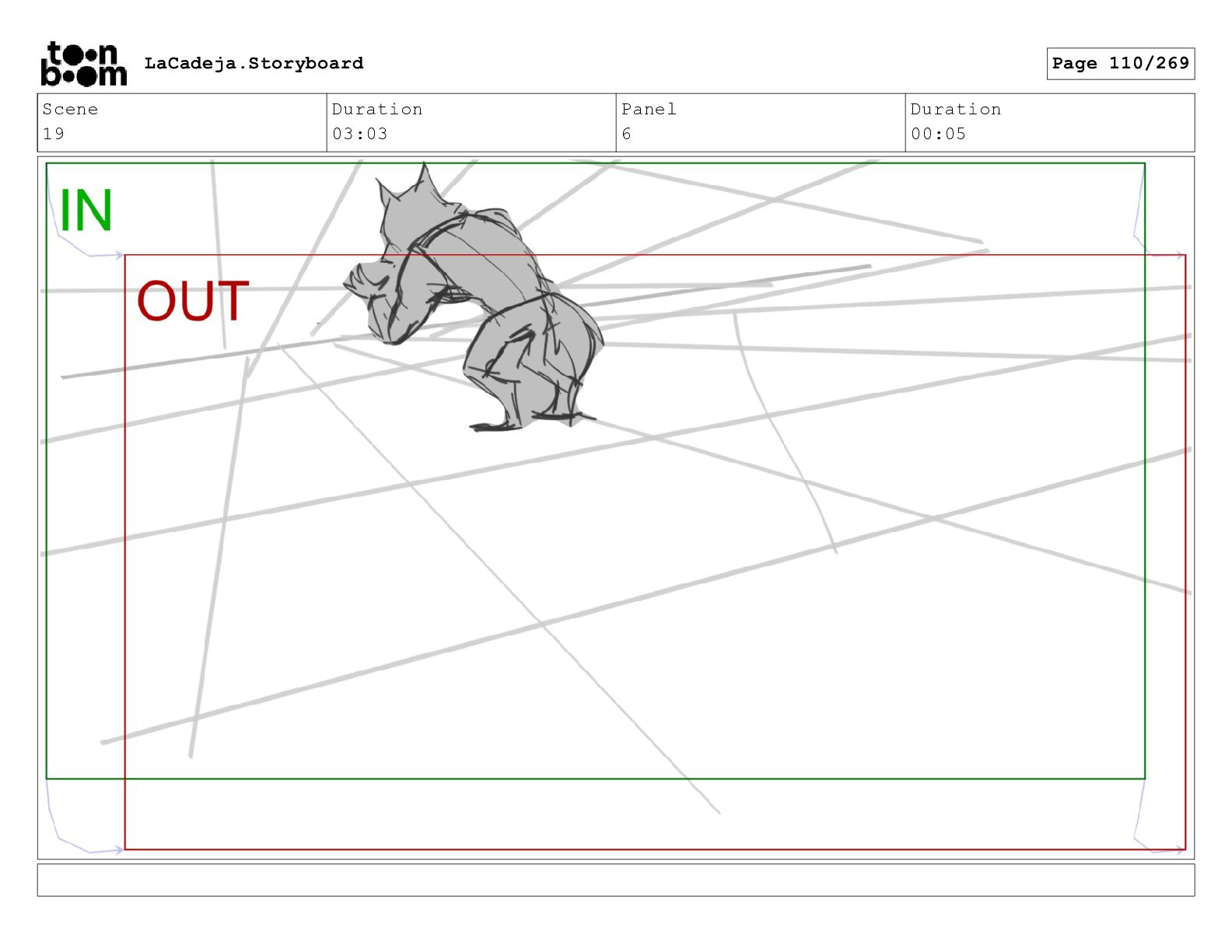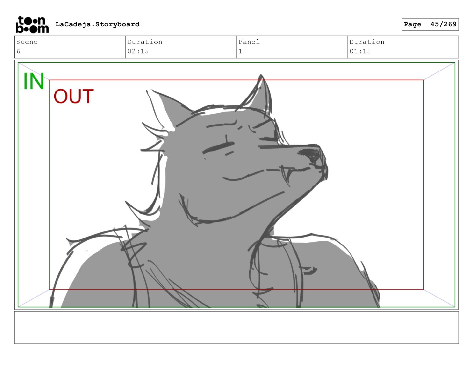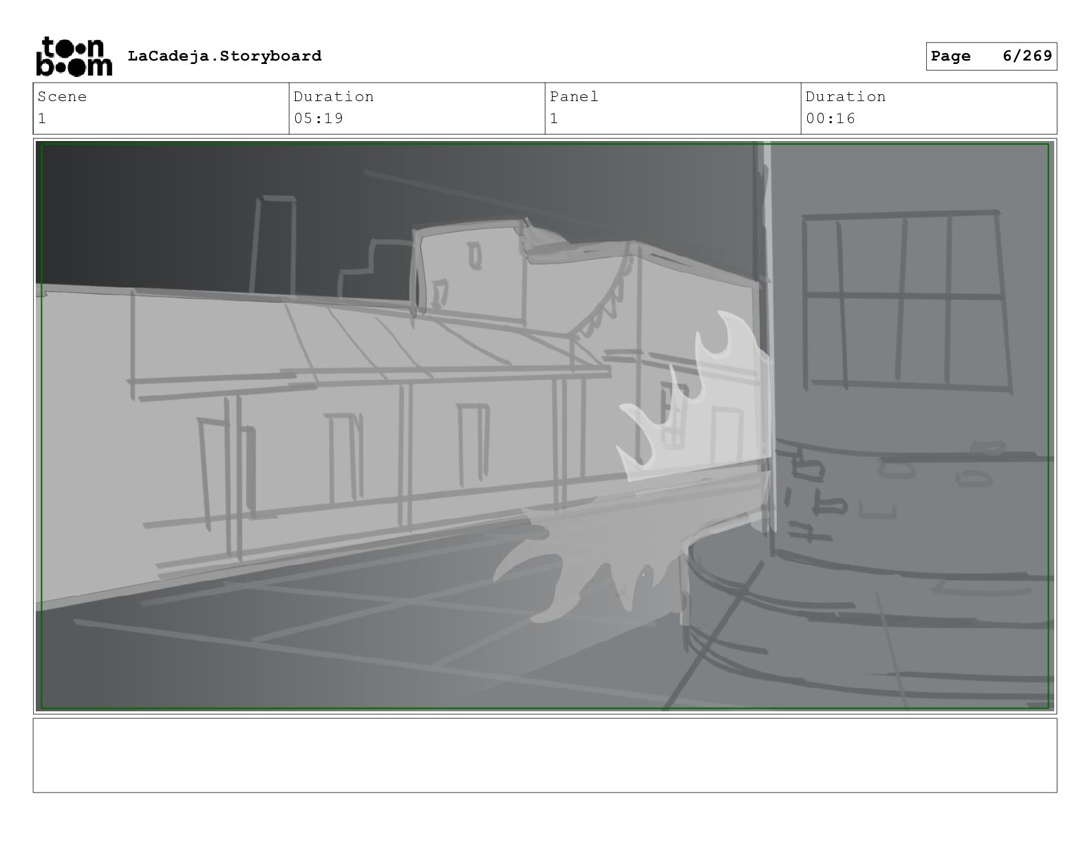Scene 1 Duration 05:19 Panel 6 Duration 00:08 LaCadeja.Storyboard Page