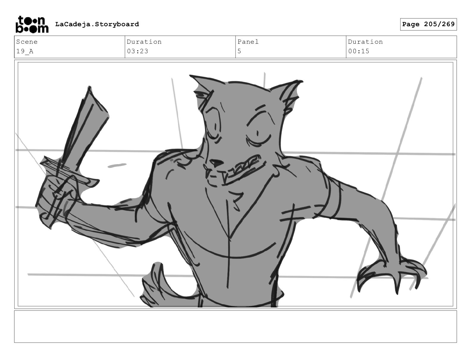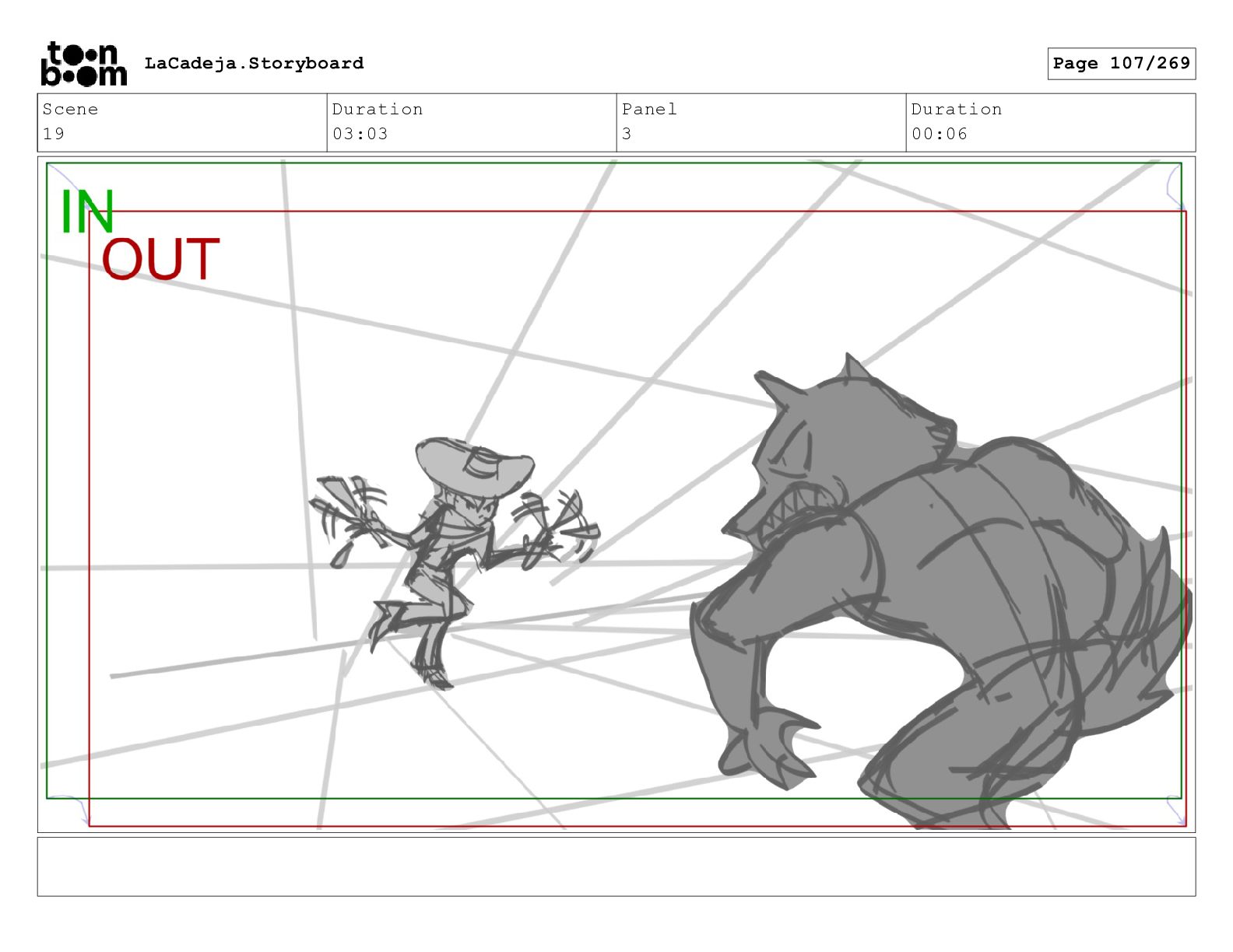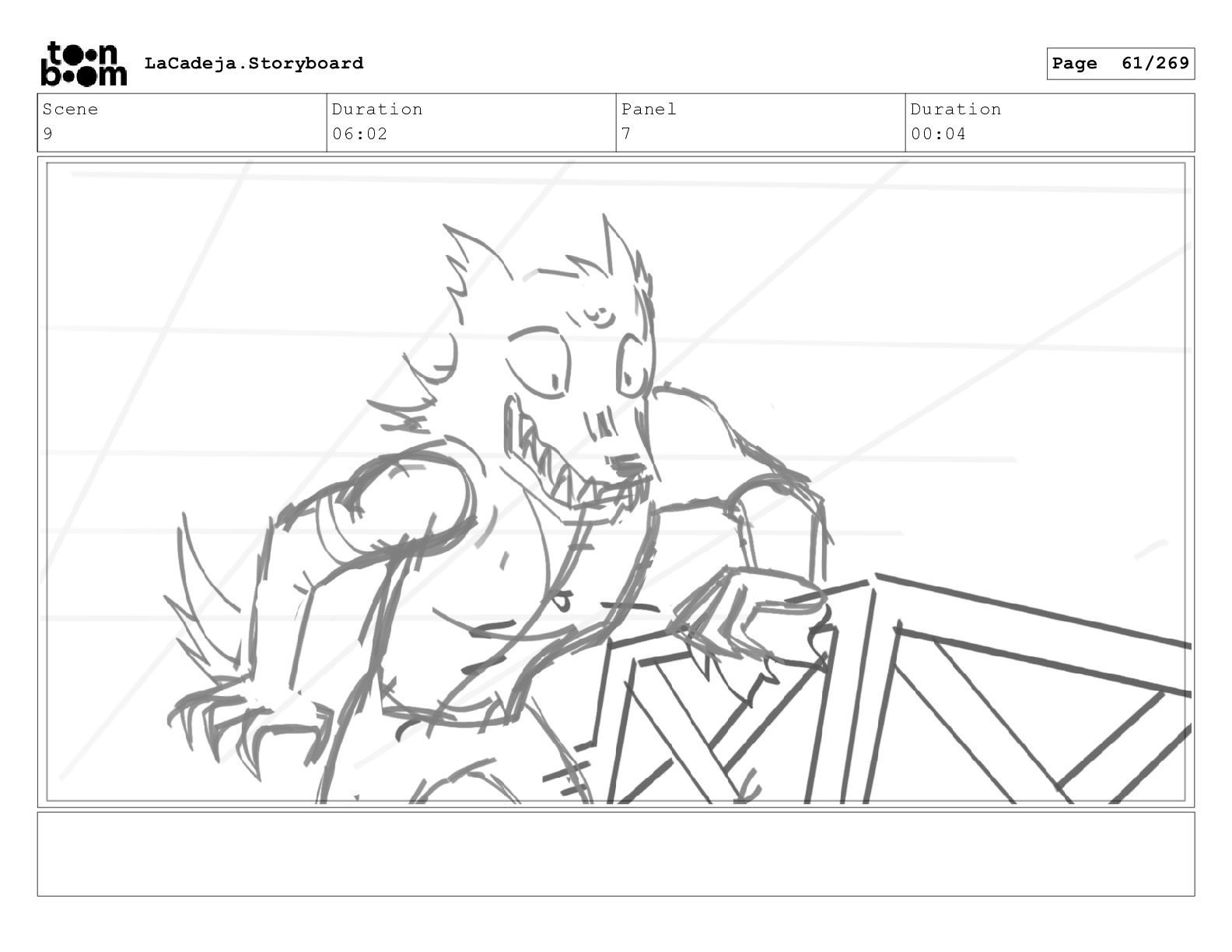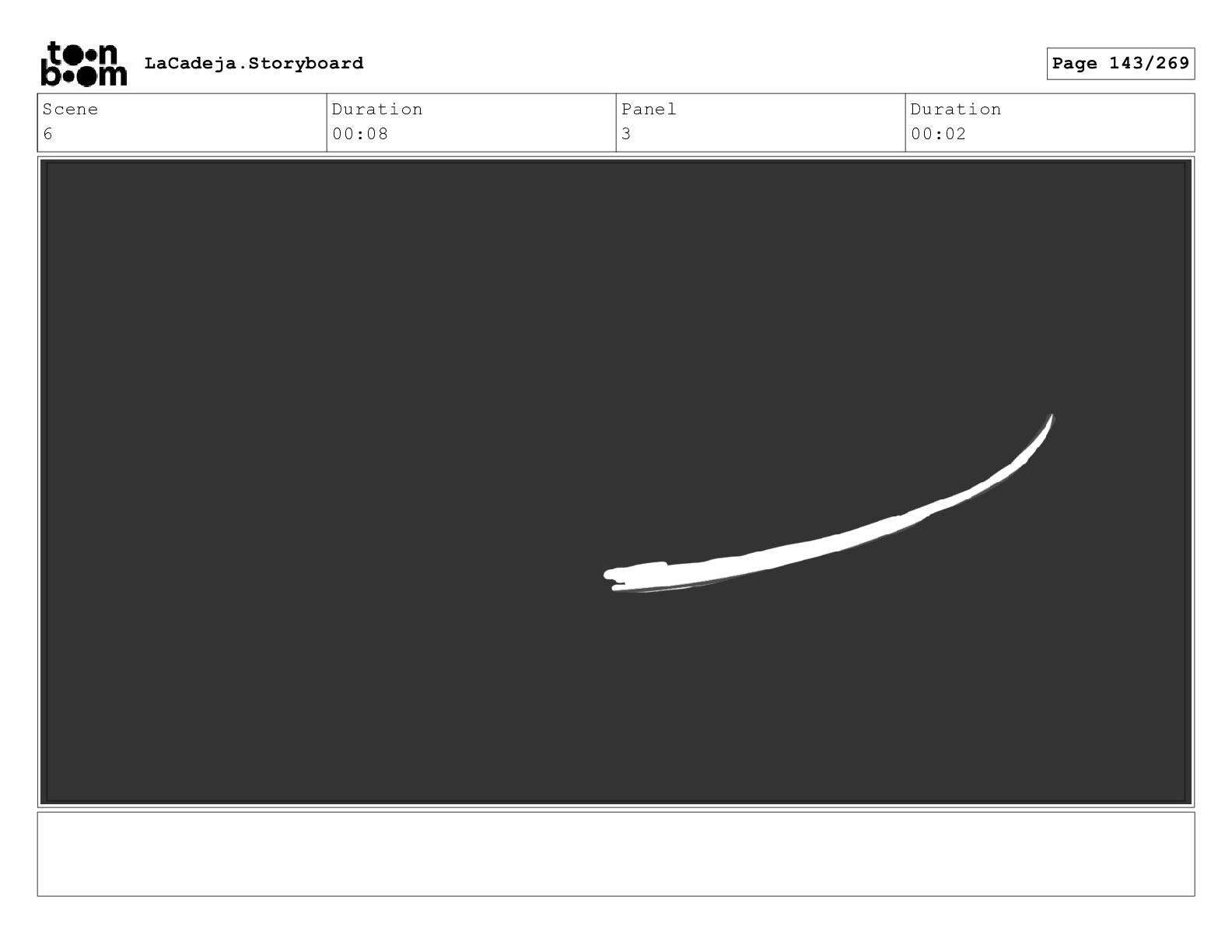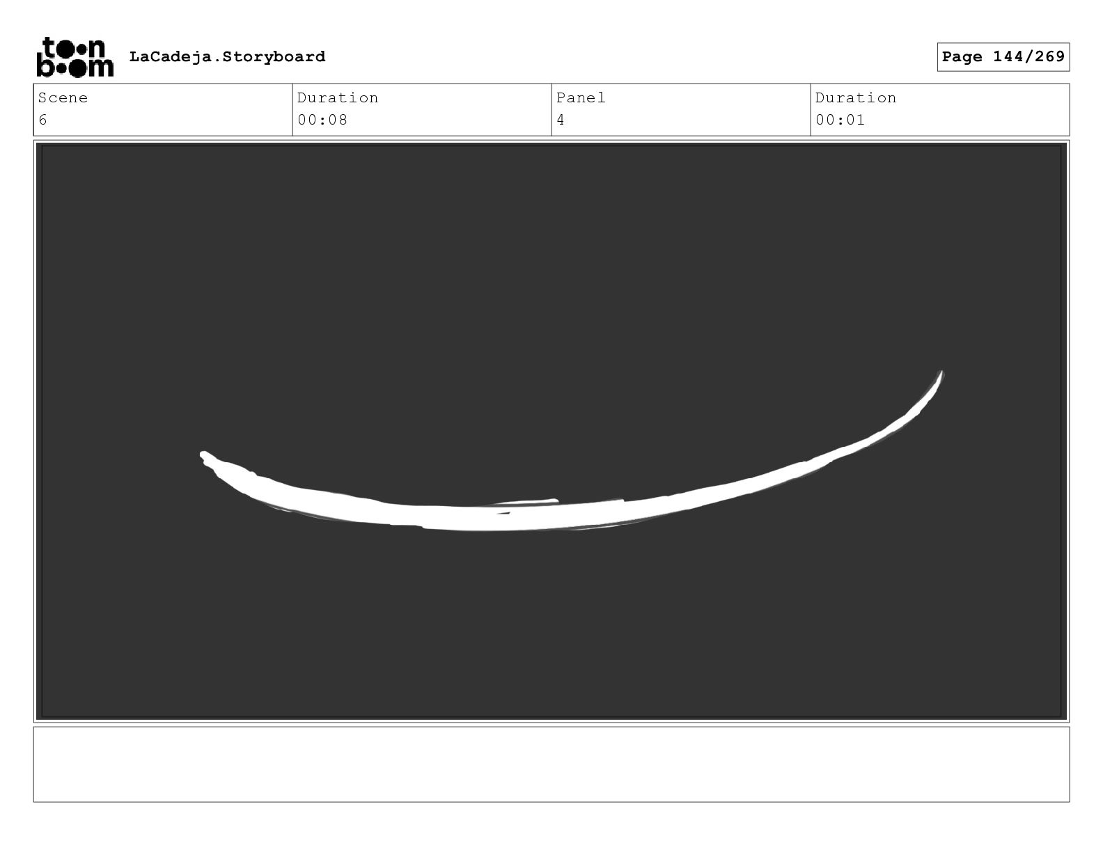 Scene 1 Duration 05:19 Panel 6 Duration 00:08 LaCadeja.Storyboard Page