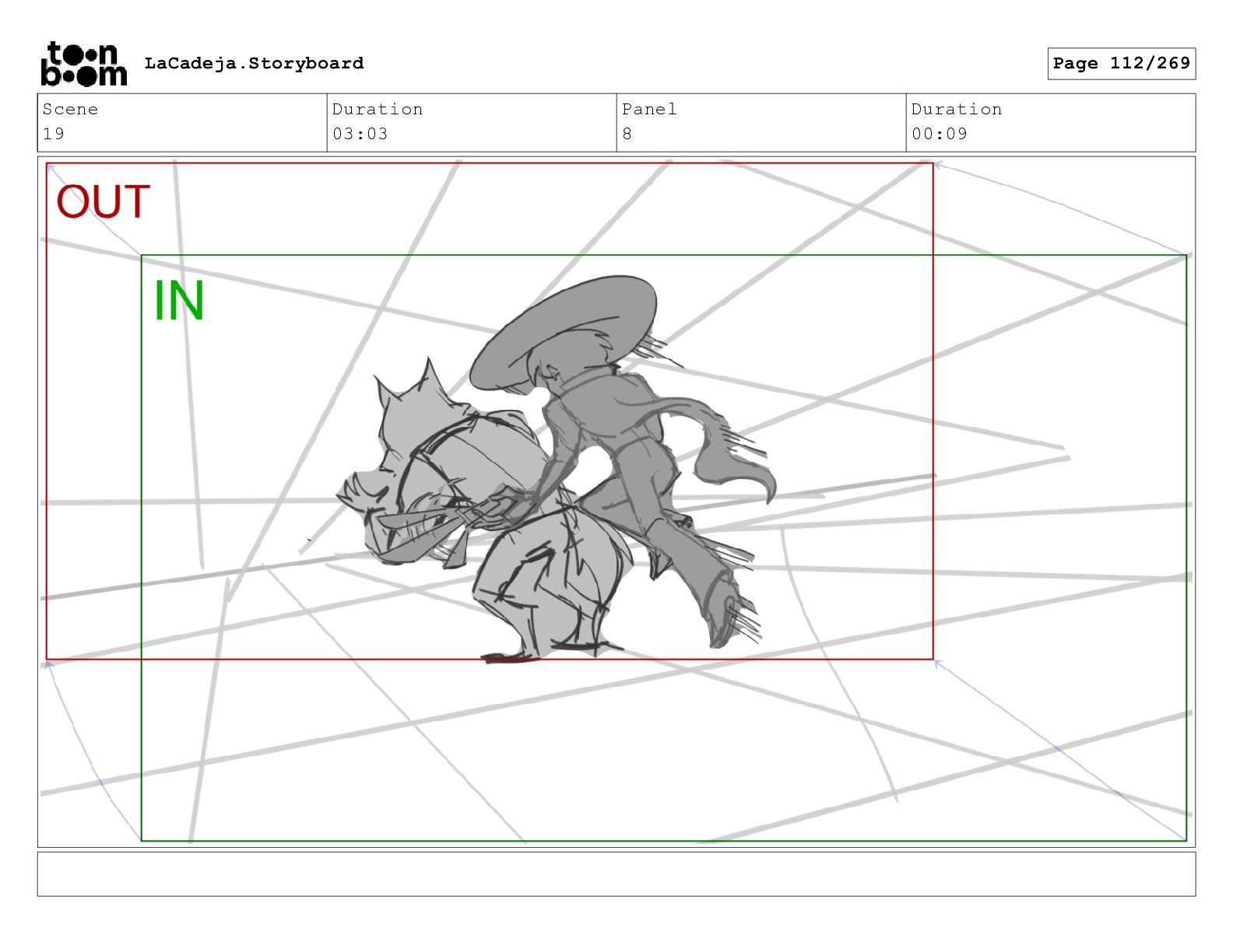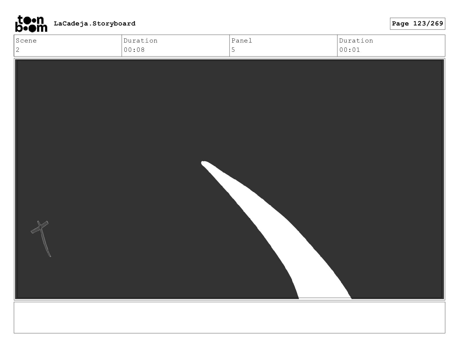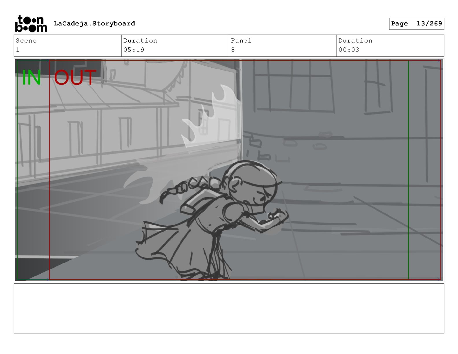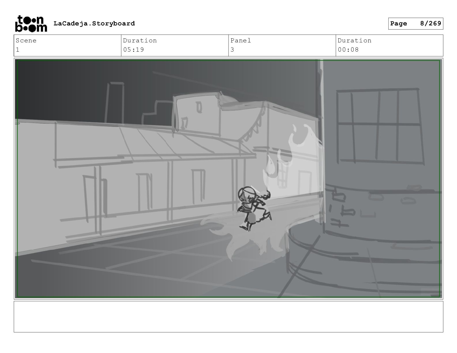 Scene 1 Duration 05:19 Panel 8 Duration 00:03 LaCadeja.Storyboard Page