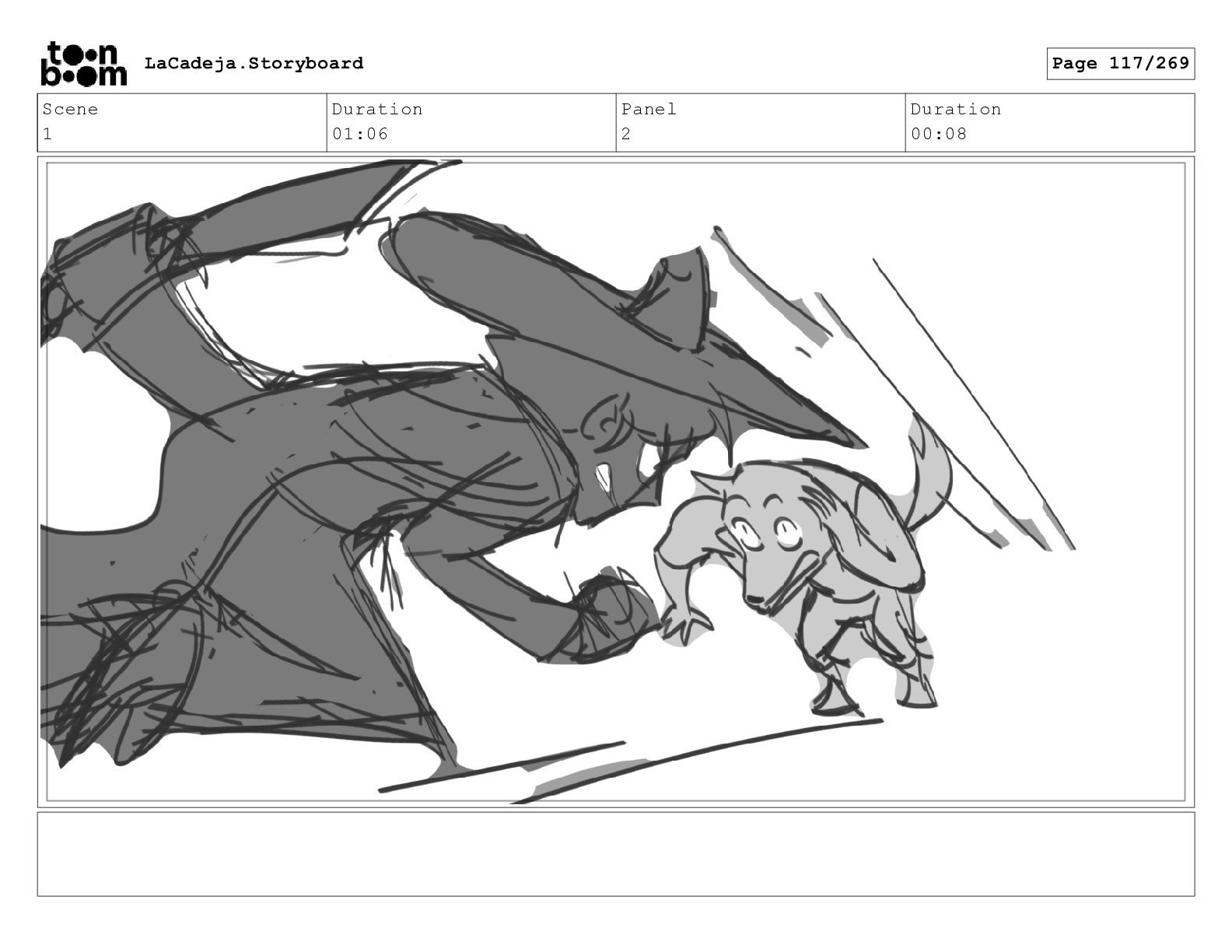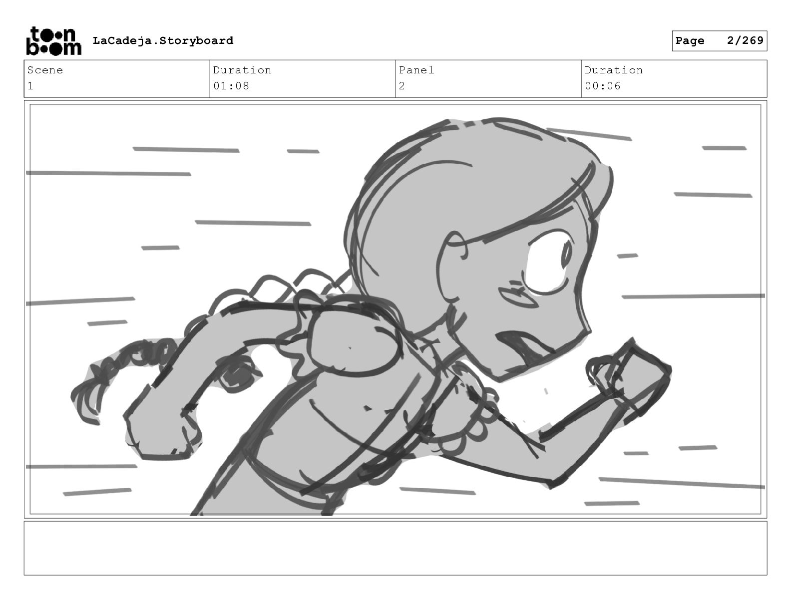 Scene 1 Duration 01:08 Panel 2 Duration 00:06 LaCadeja.Storyboard Page