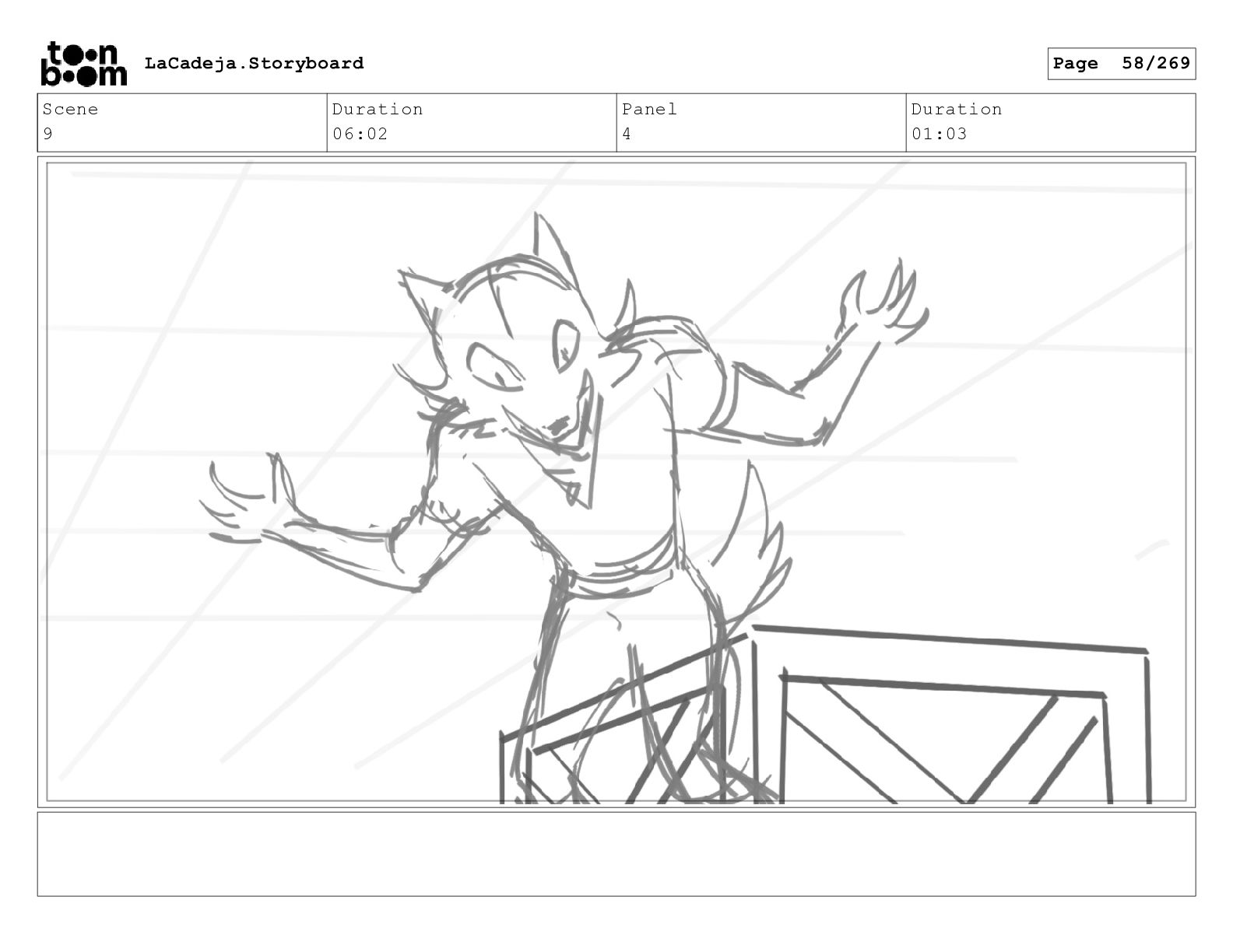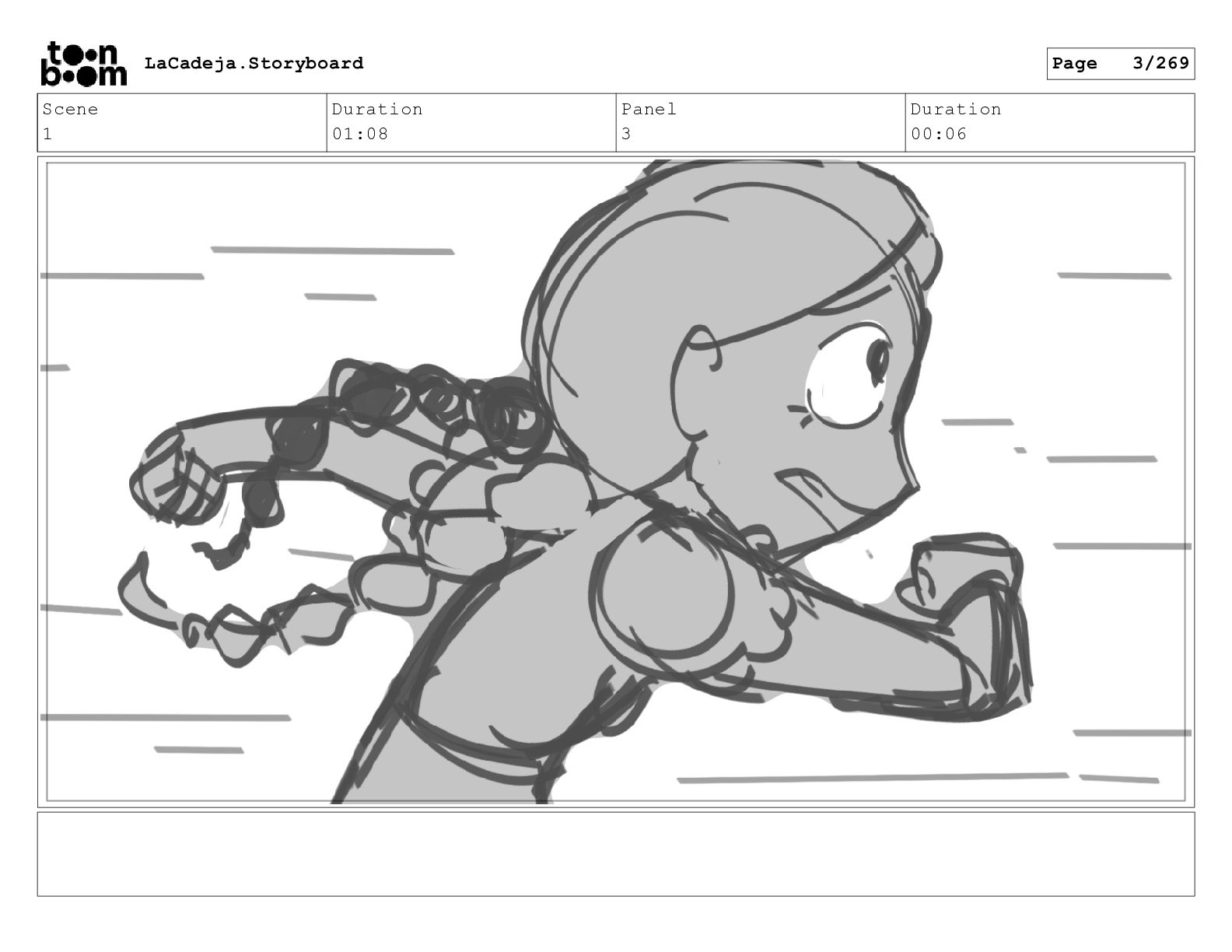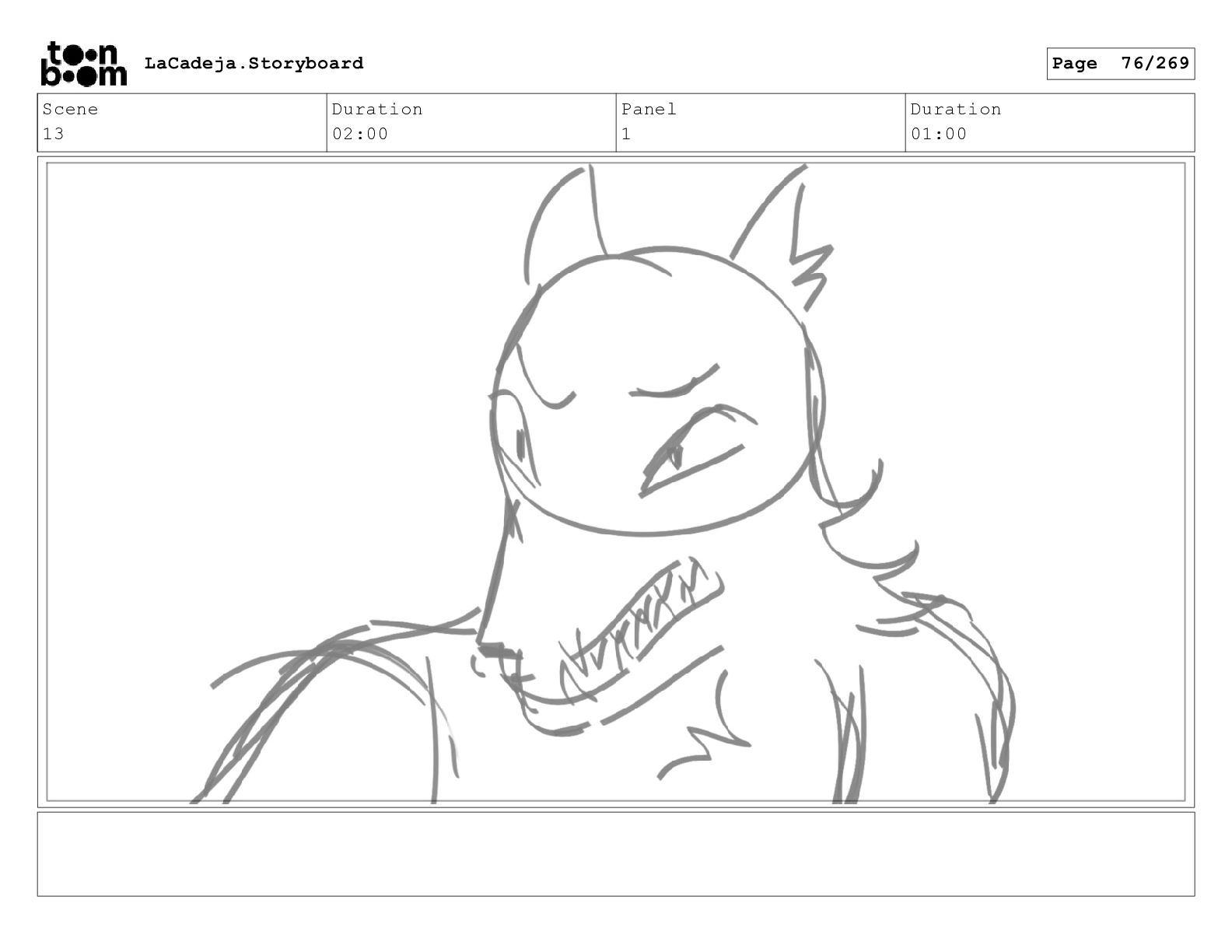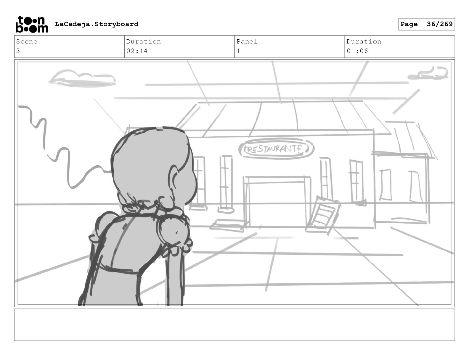 Scene 1 Duration 01:08 Panel 3 Duration 00:06 LaCadeja.Storyboard Page