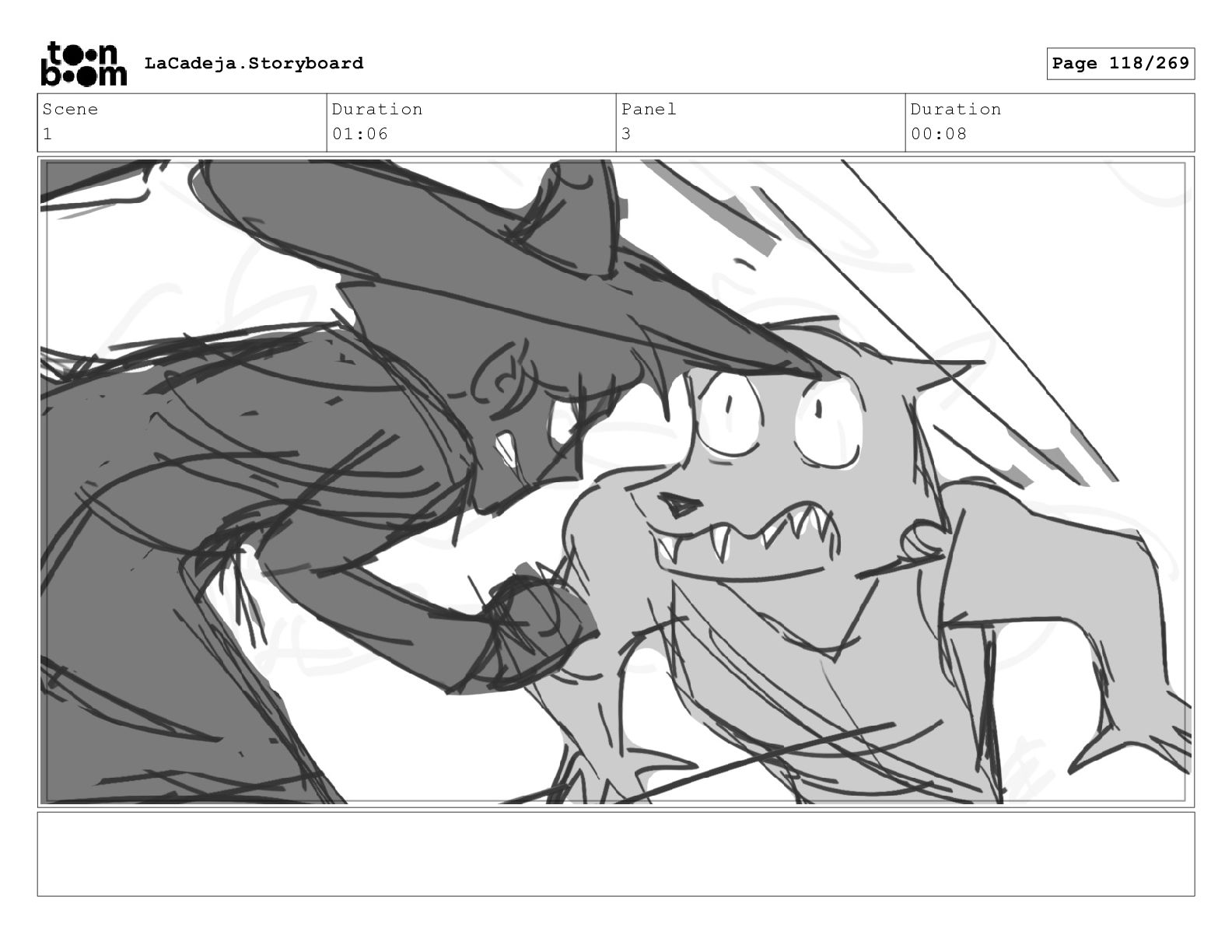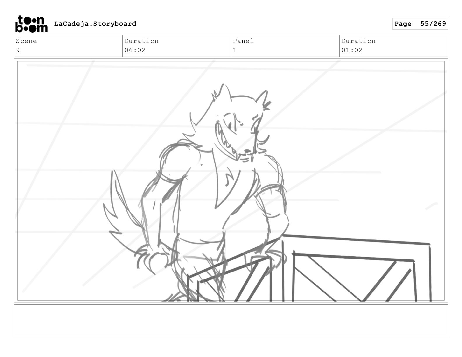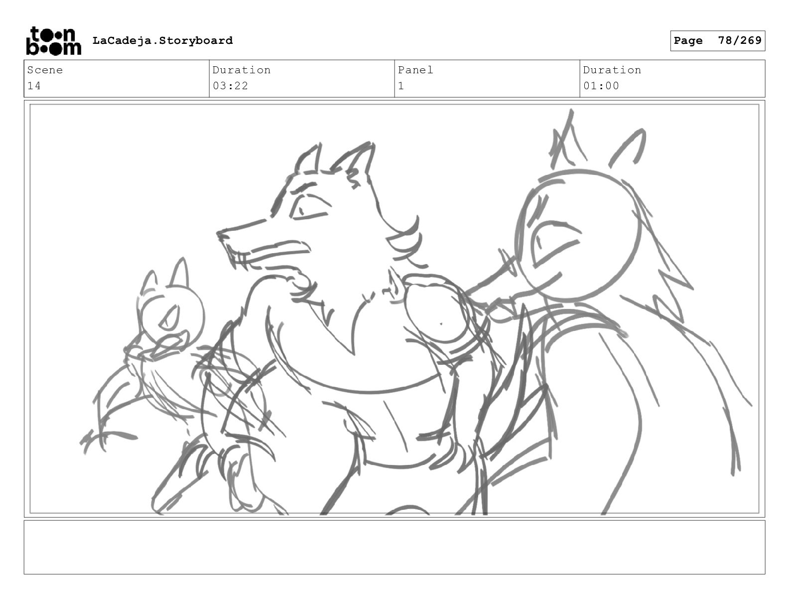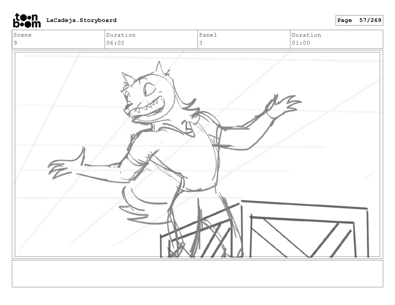 Scene 1 Duration 01:08 Panel 3 Duration 00:06 LaCadeja.Storyboard Page