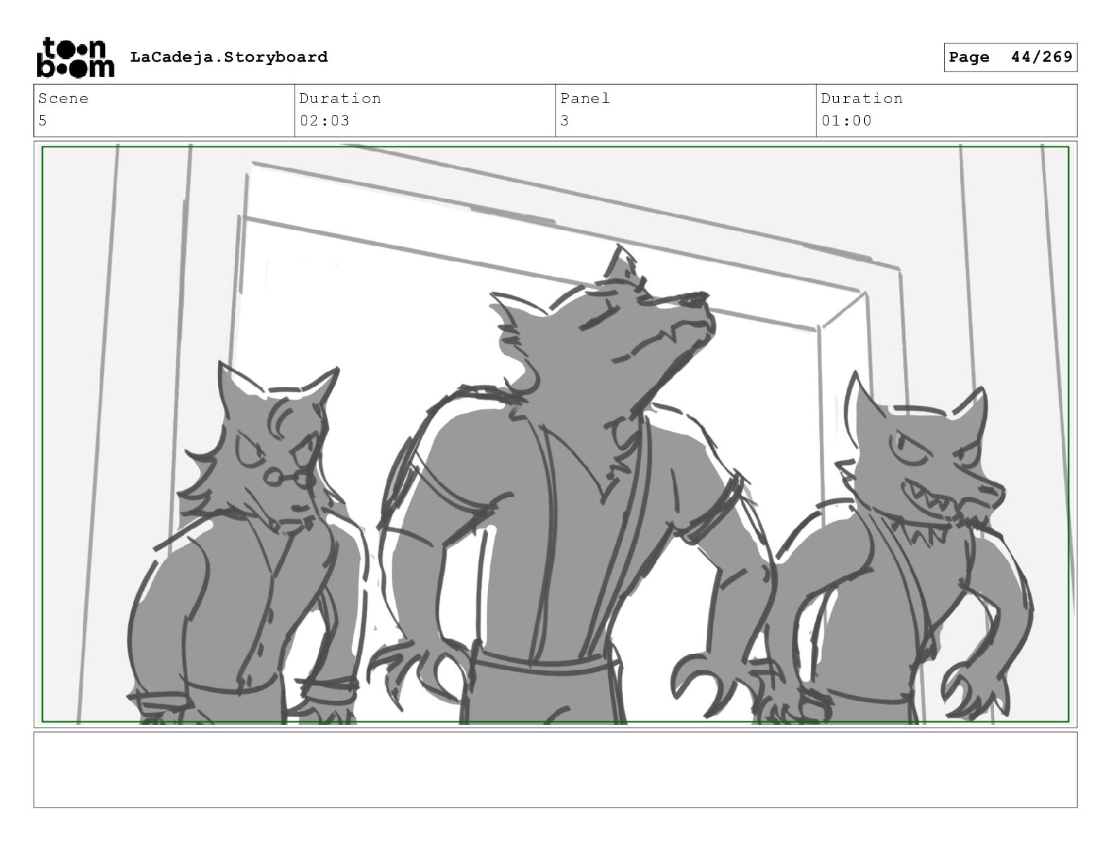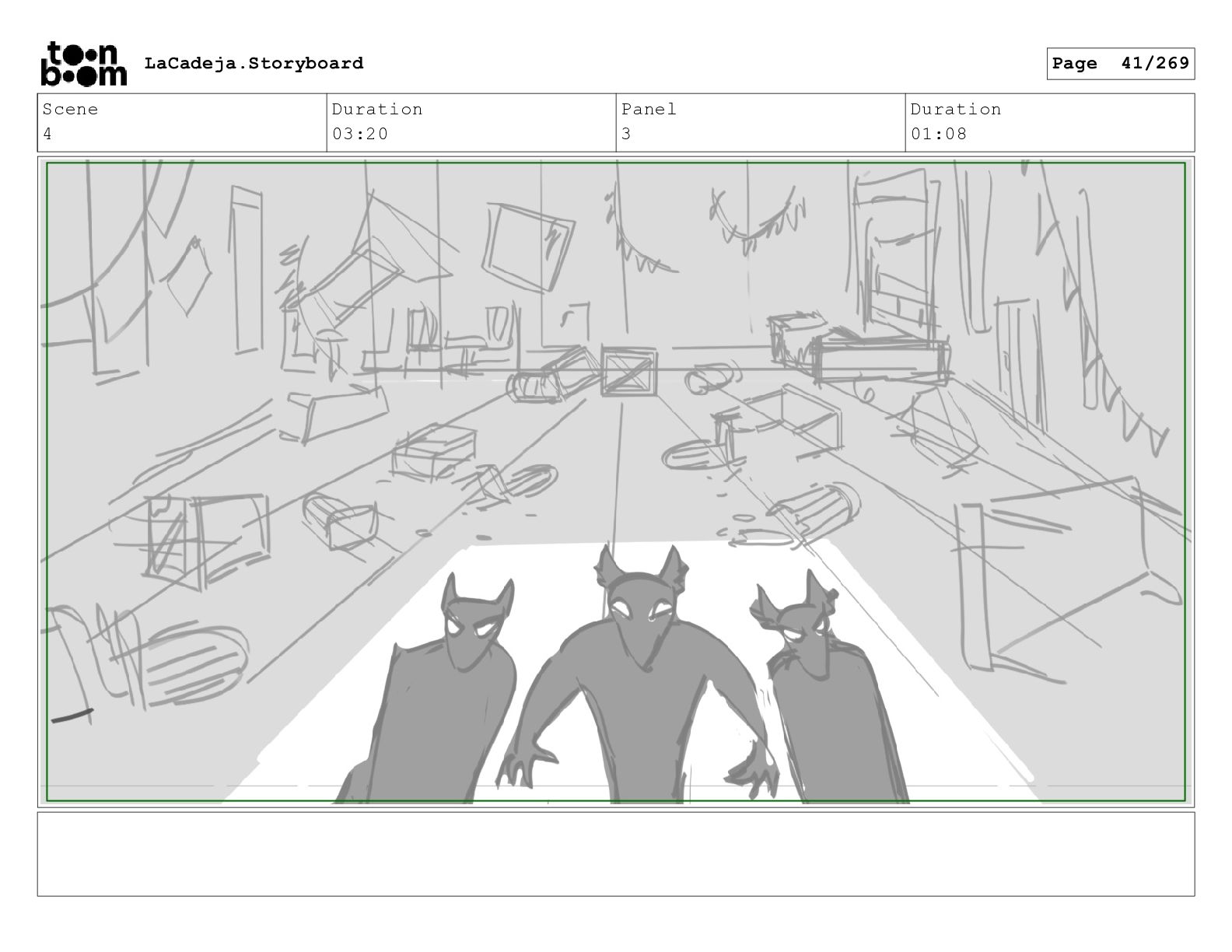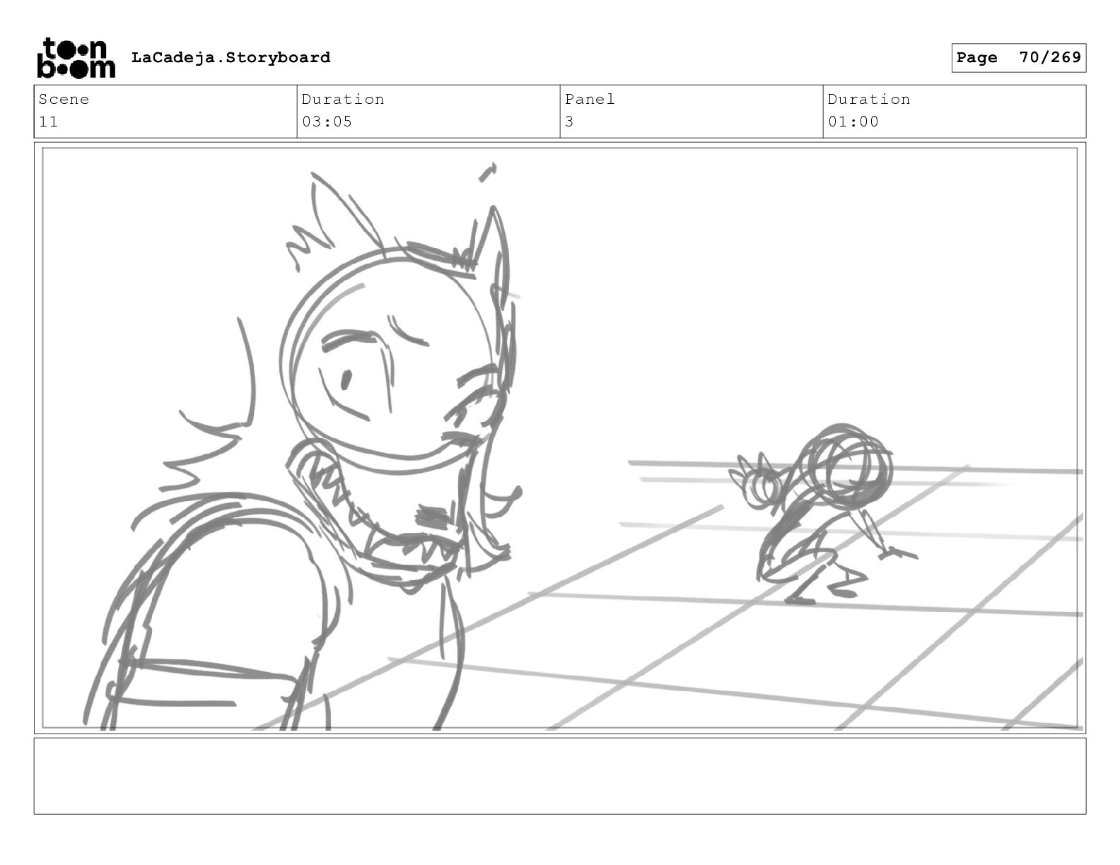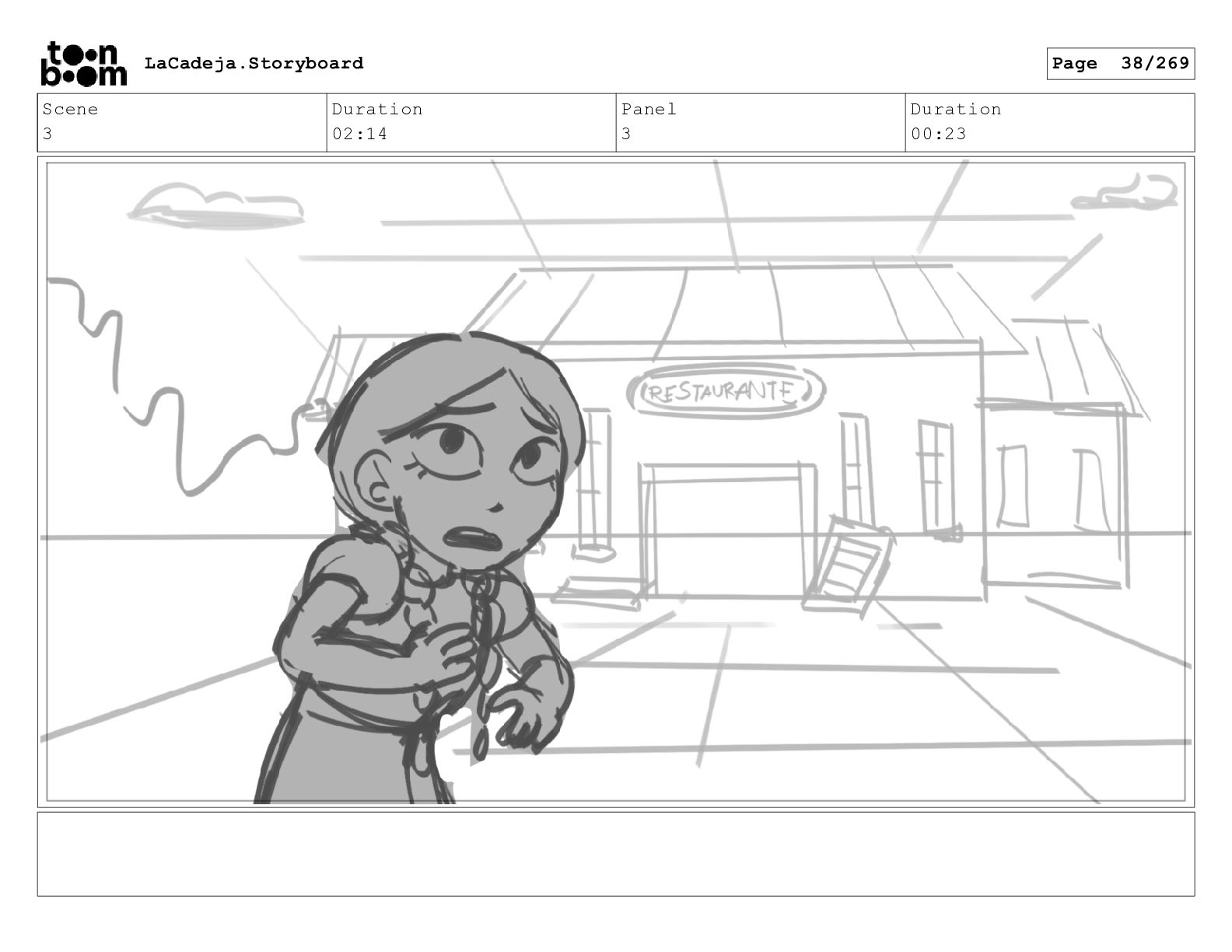 Scene 1 Duration 01:08 Panel 3 Duration 00:06 LaCadeja.Storyboard Page