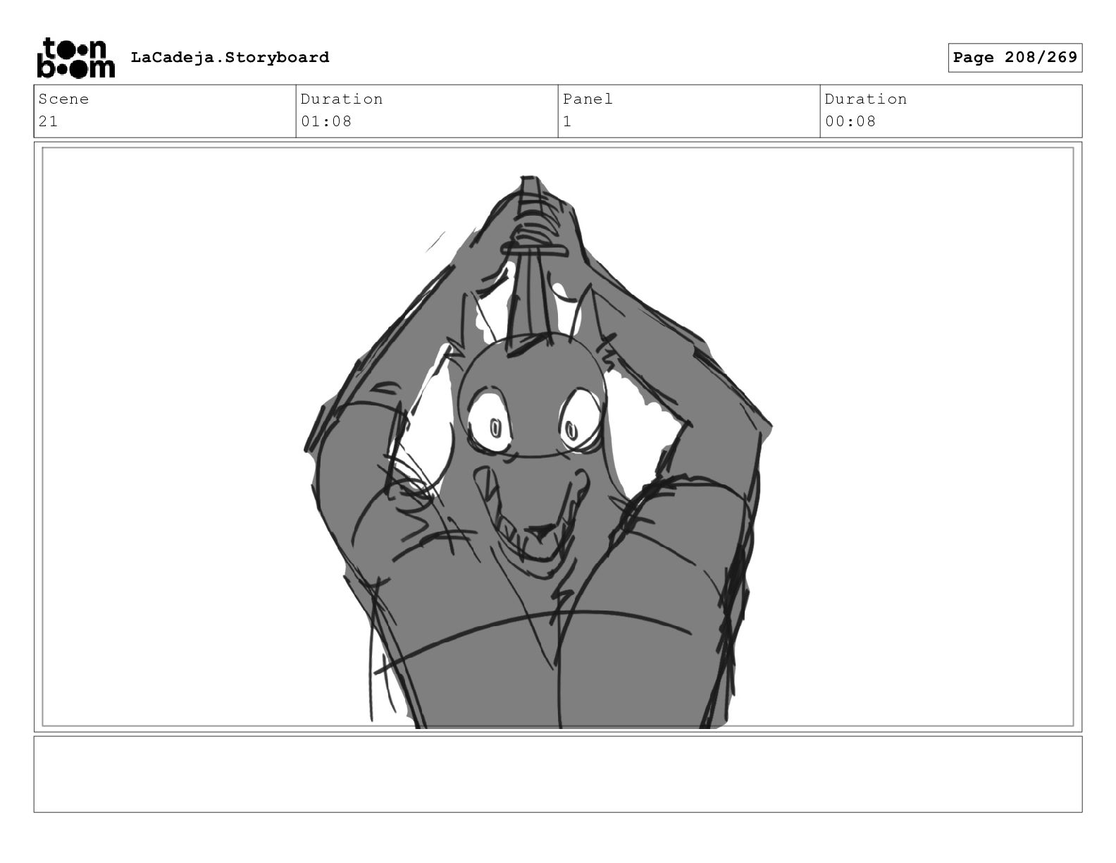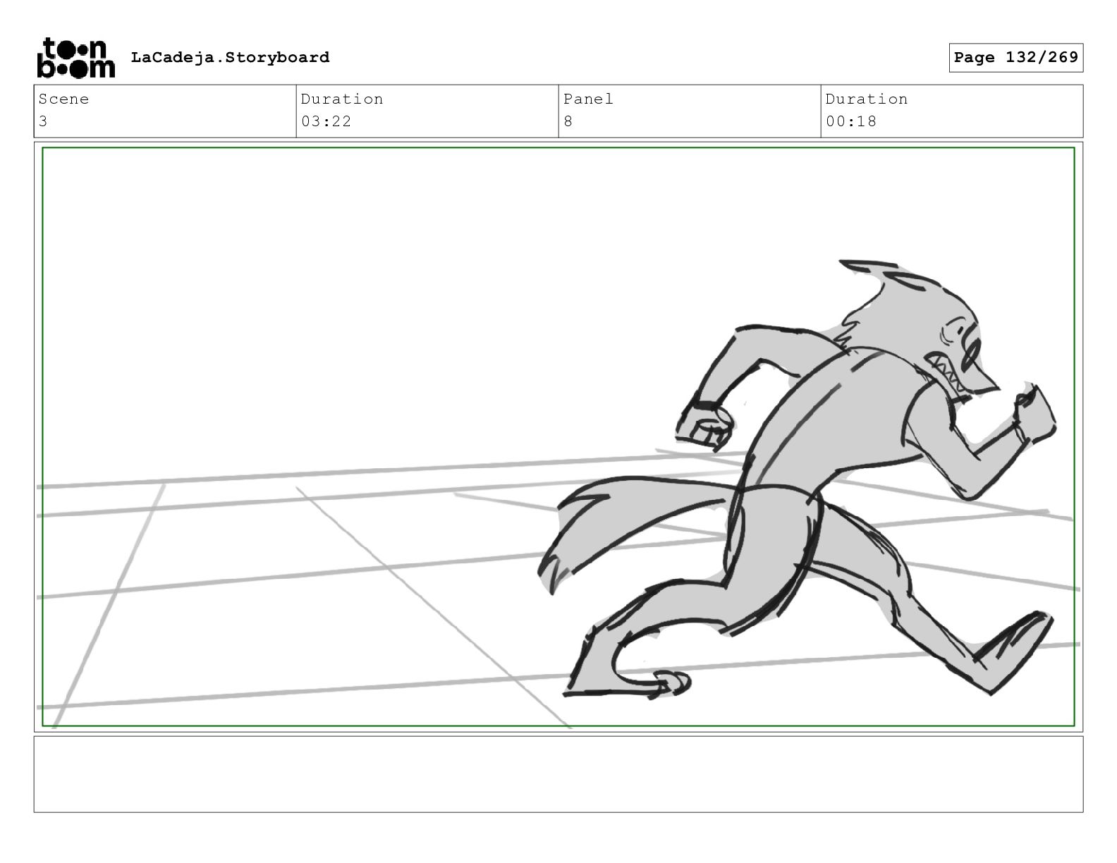 Scene 1 Duration 05:19 Panel 3 Duration 00:08 LaCadeja.Storyboard Page
