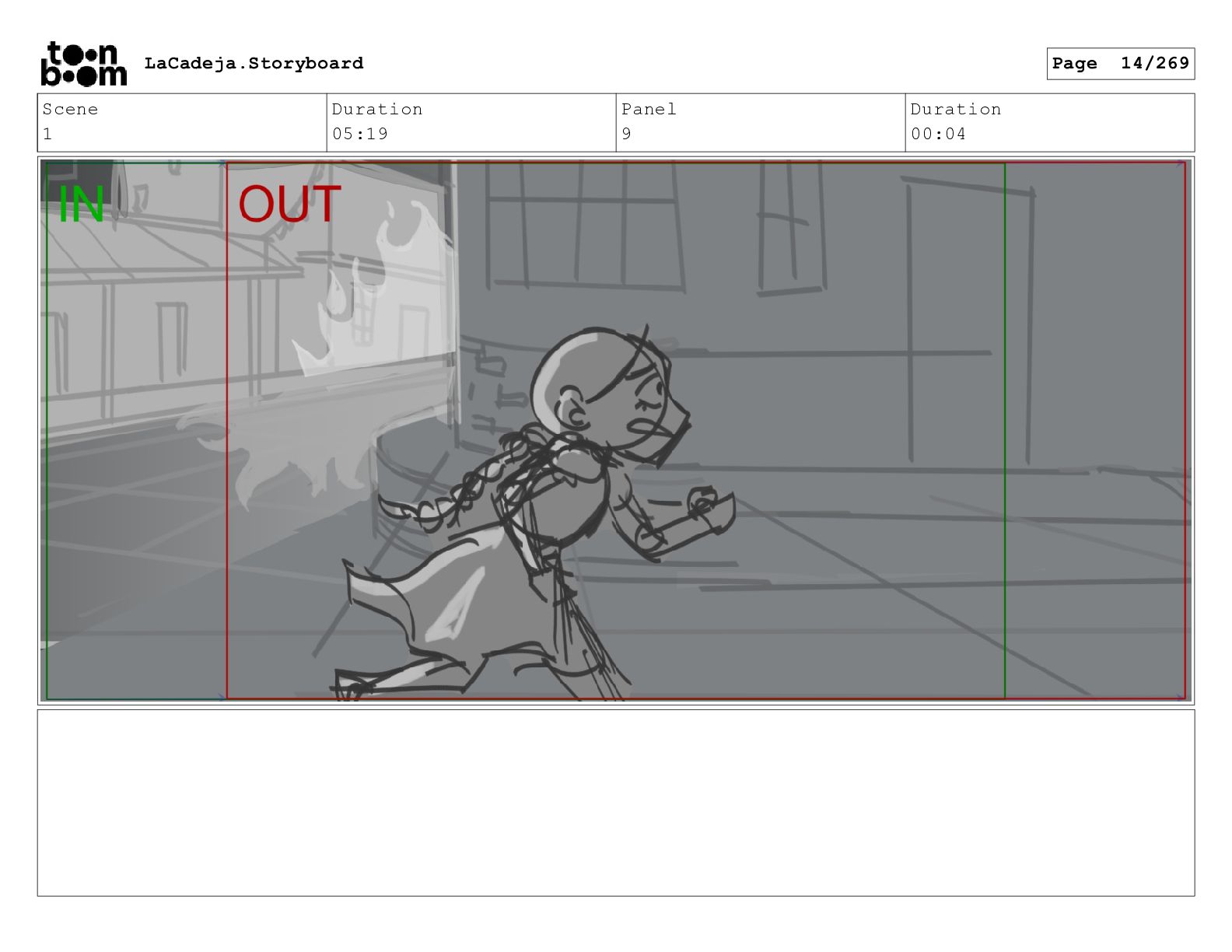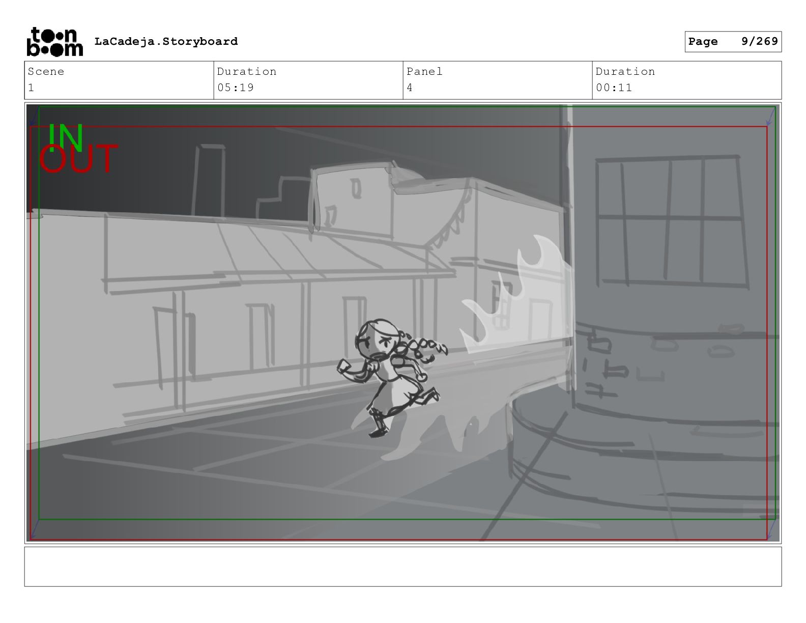 Scene 1 Duration 05:19 Panel 9 Duration 00:04 LaCadeja.Storyboard Page