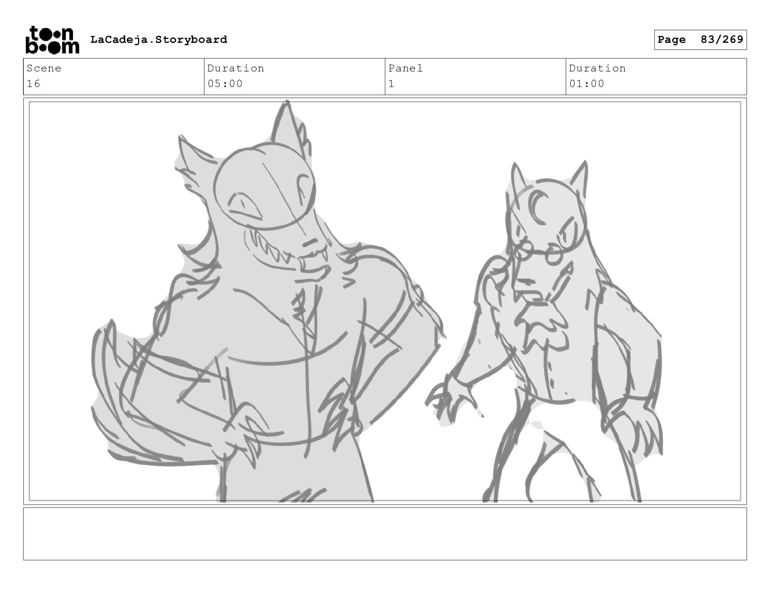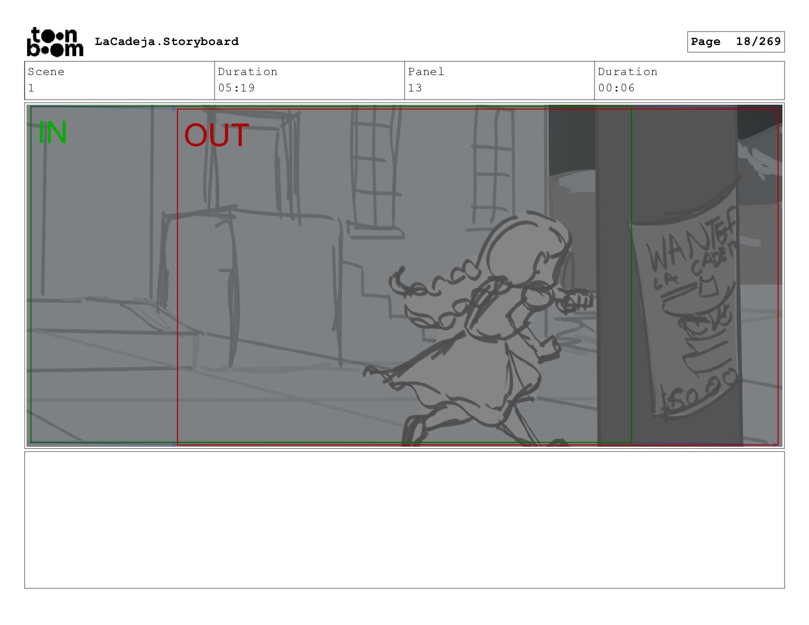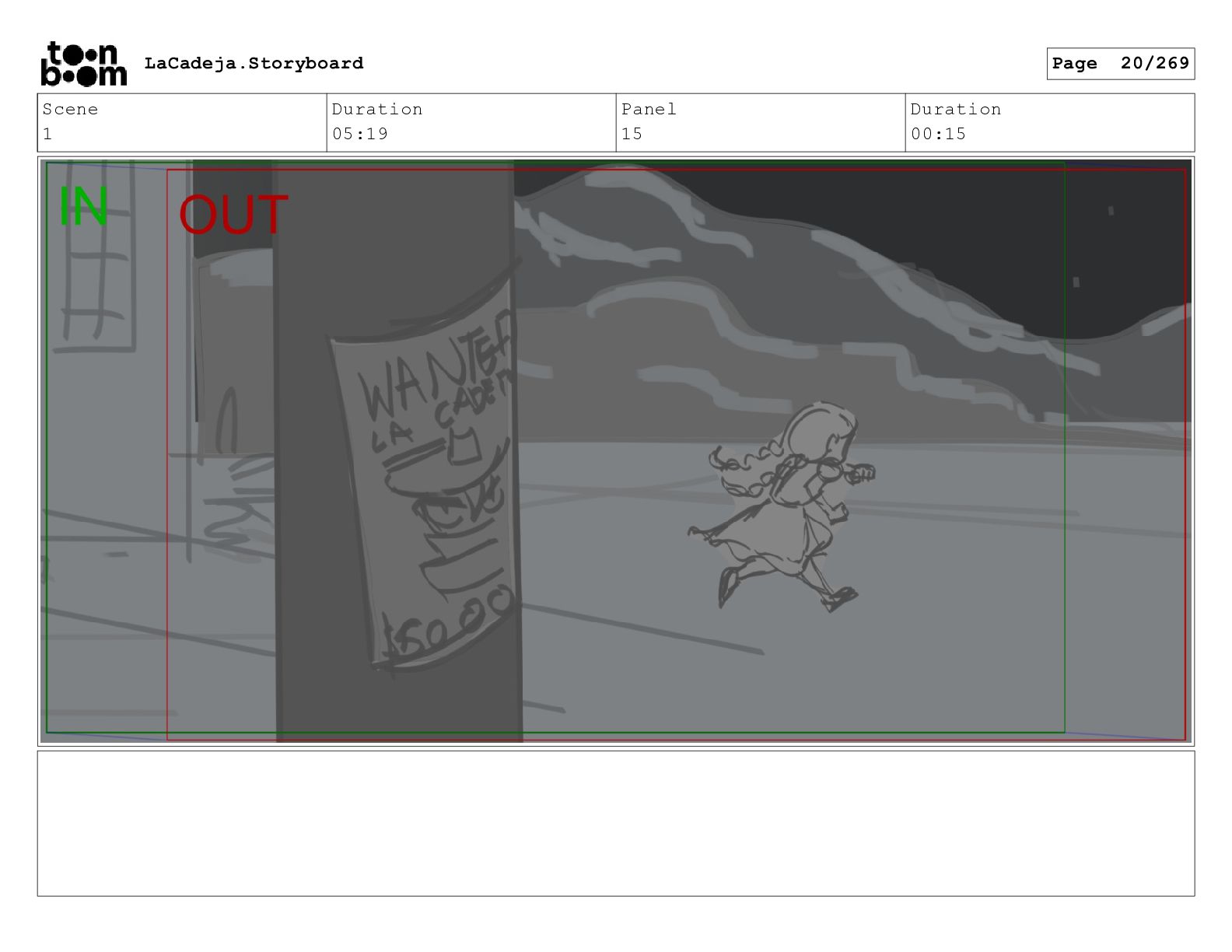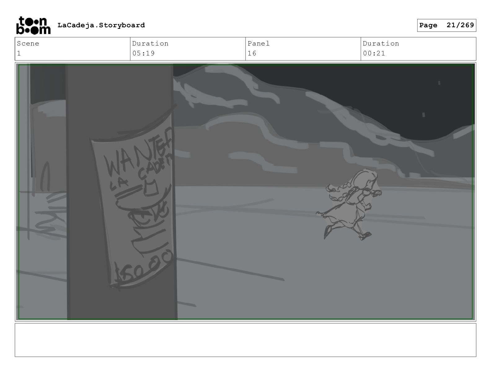Scene 1 Duration 05:19 Panel 1 Duration 00:16 LaCadeja.Storyboard Page