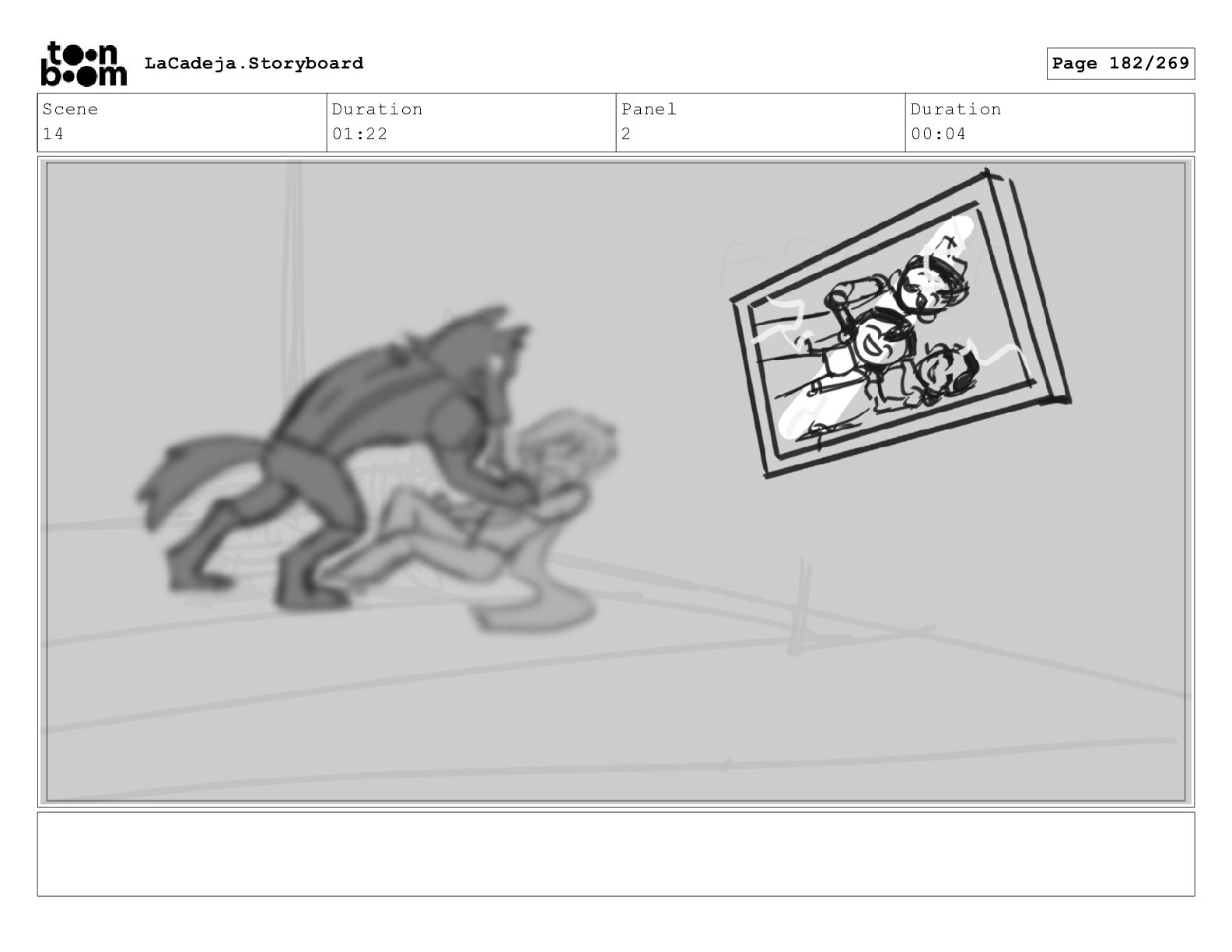 Scene 25 Duration 03:16 Panel 6 Duration 00:14 LaCadeja.Storyboard Page