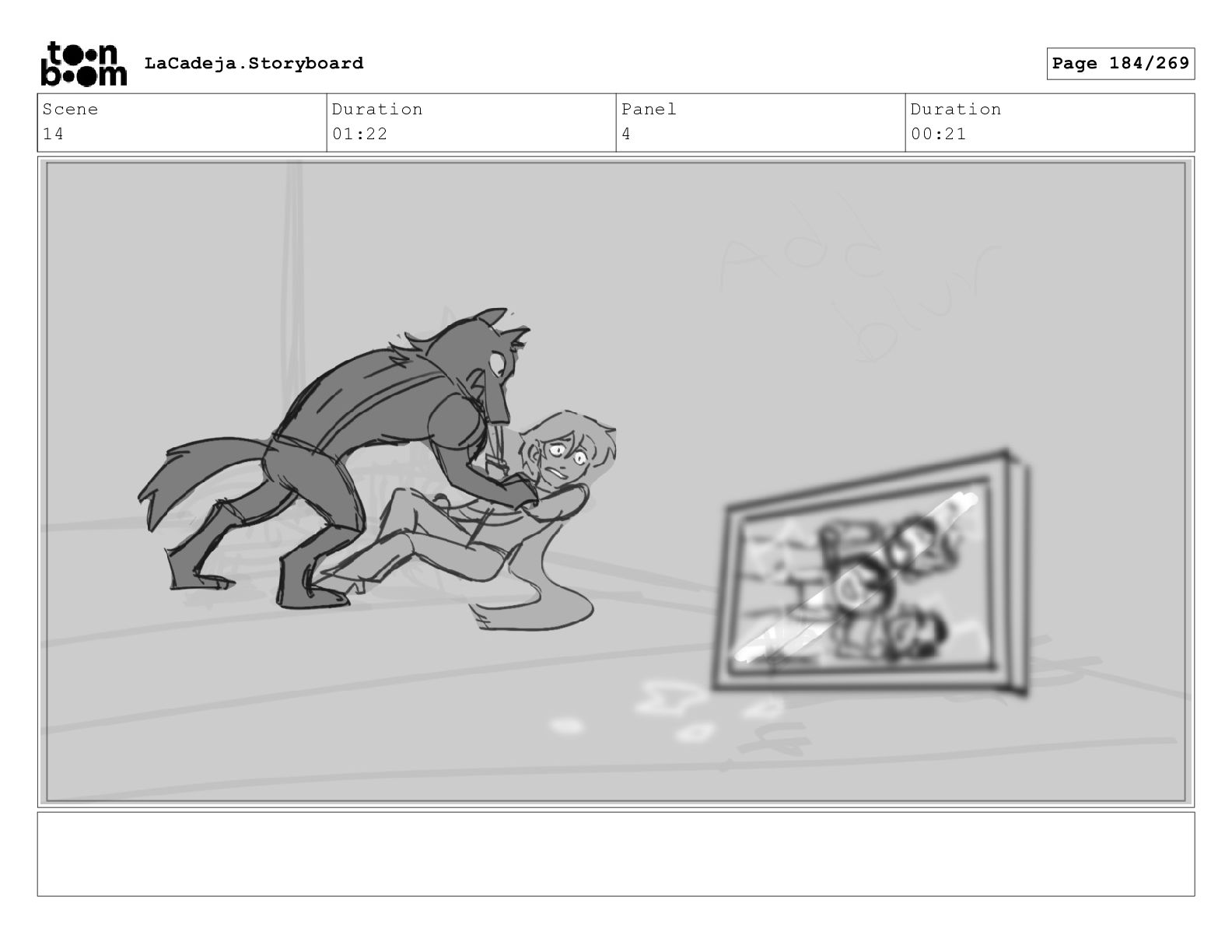 Scene 25 Duration 03:16 Panel 4 Duration 00:14 LaCadeja.Storyboard Page