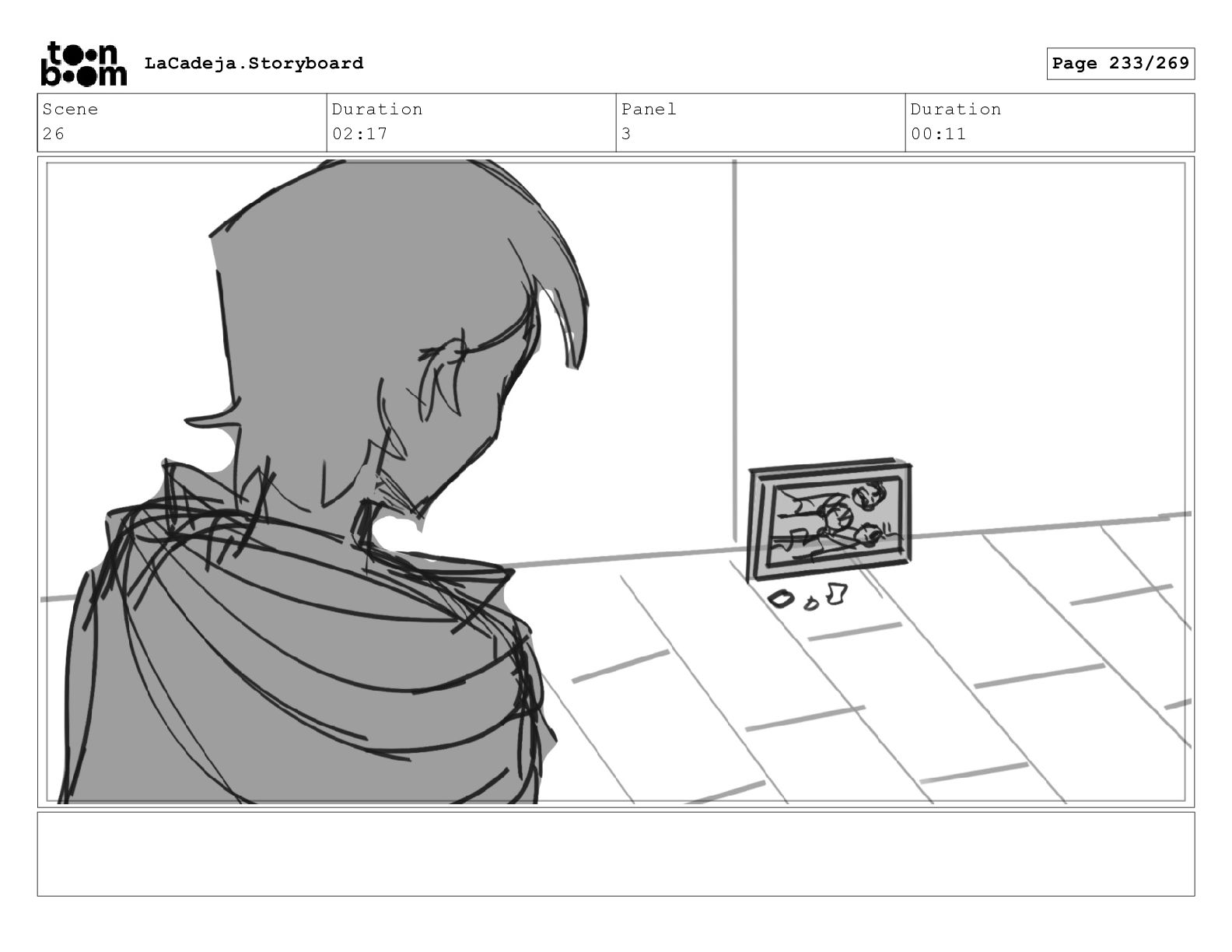 Scene 26 Duration 02:17 Panel 3 Duration 00:11 LaCadeja.Storyboard Page