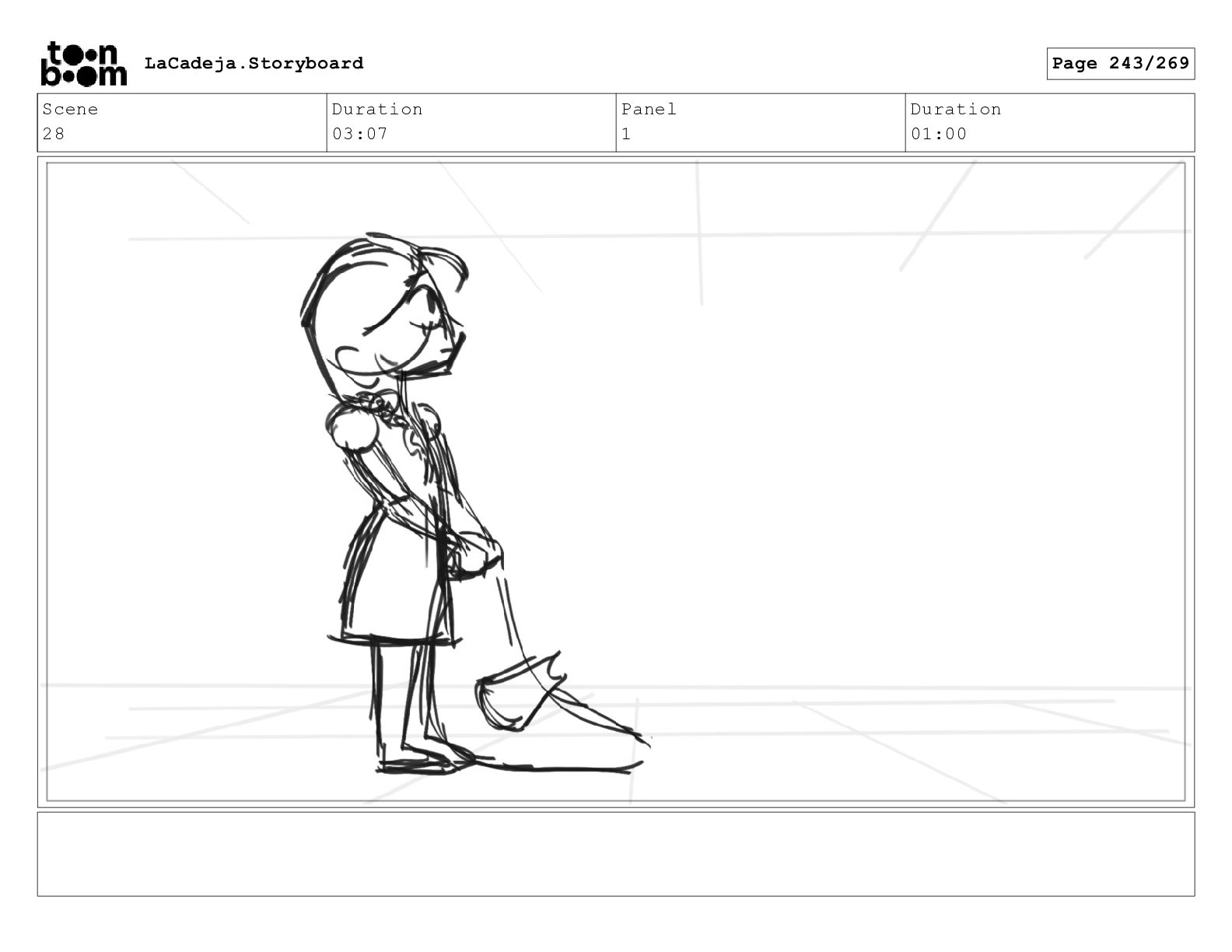 Scene 28 Duration 03:07 Panel 1 Duration 01:00 LaCadeja.Storyboard Page