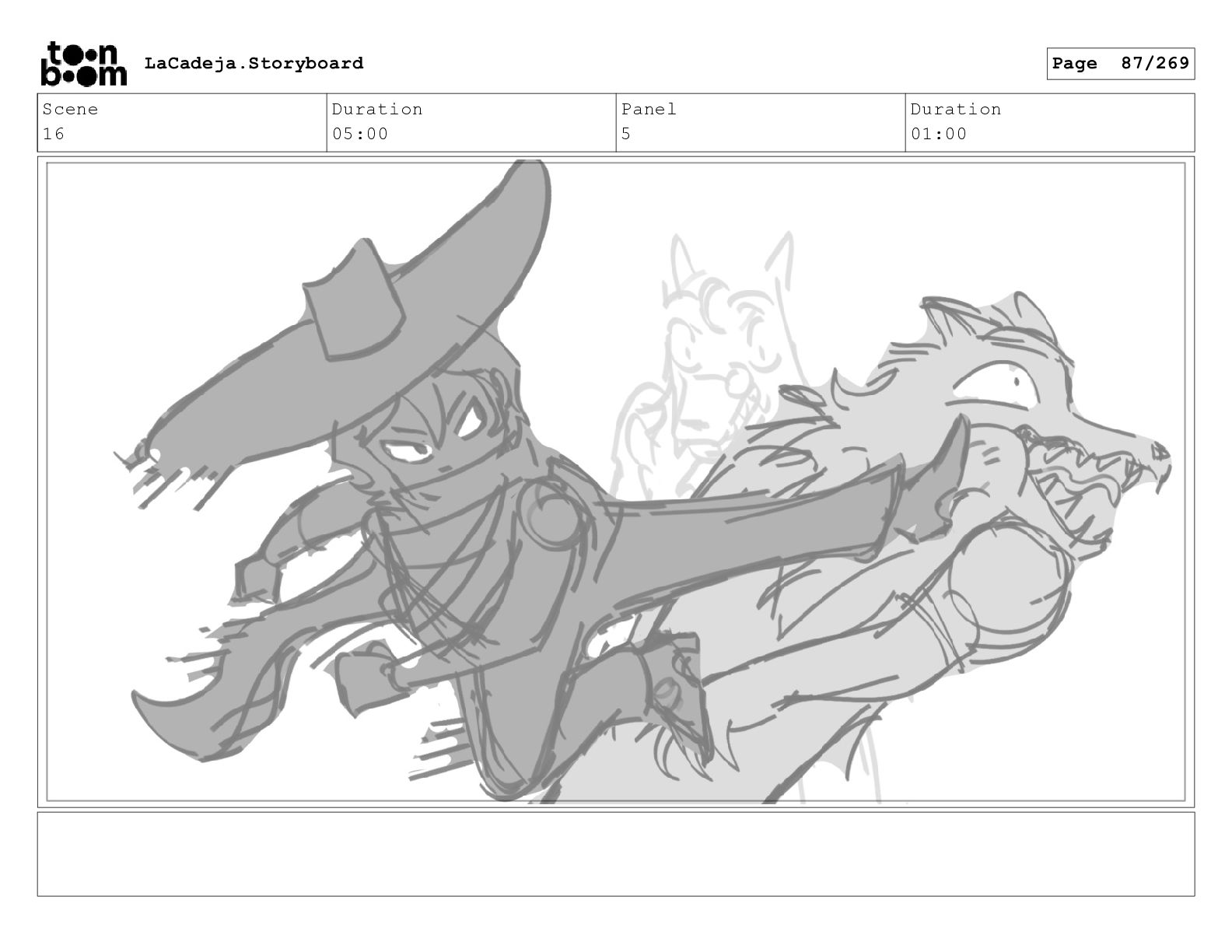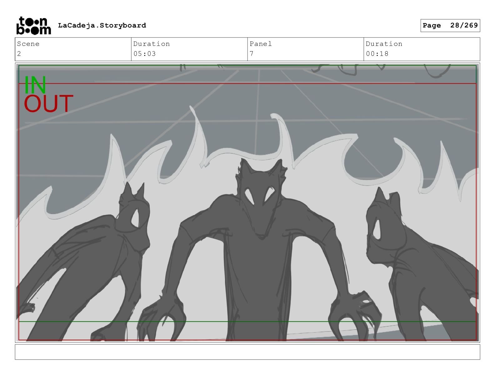 Scene 28 Duration 03:07 Panel 5 Duration 01:00 LaCadeja.Storyboard Page