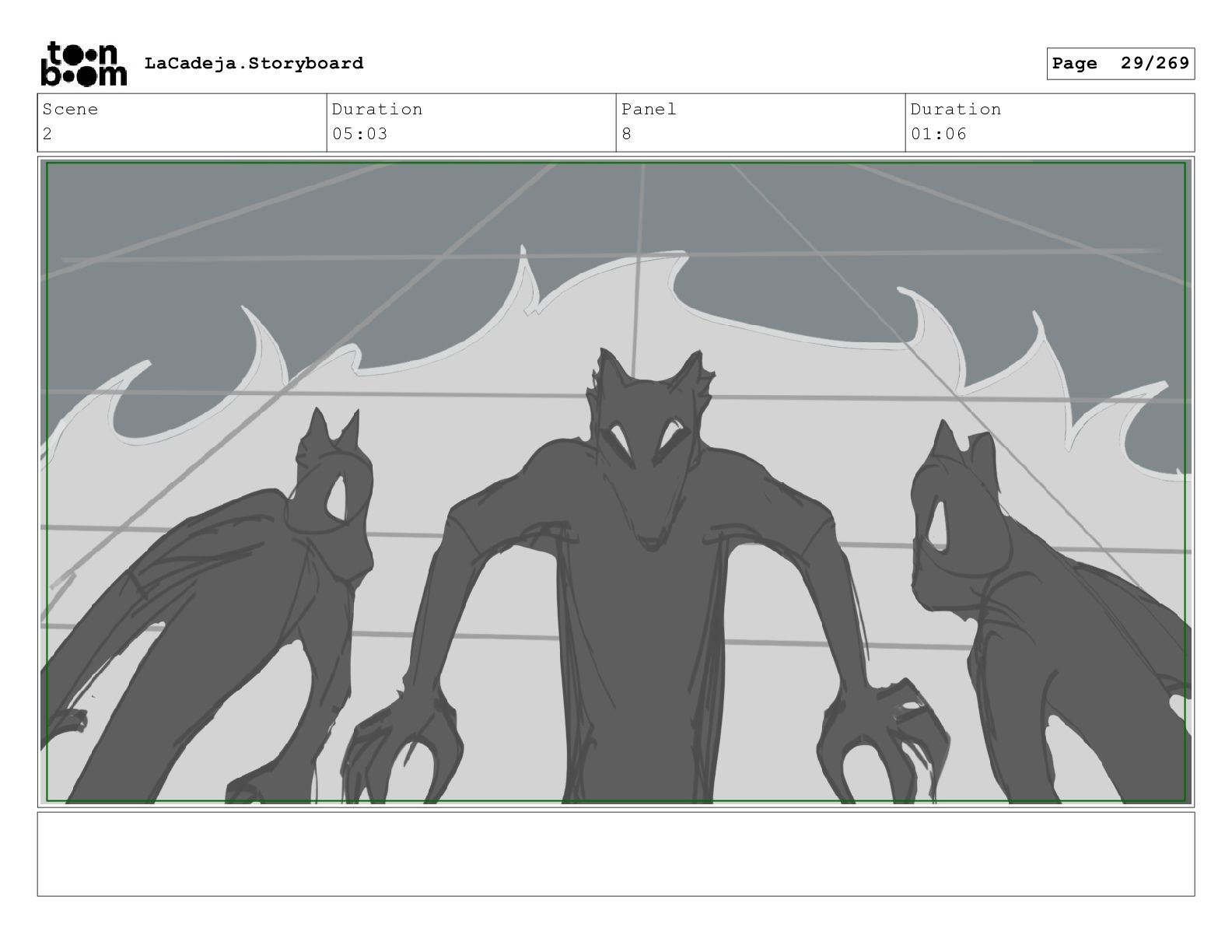 Scene 29 Duration 08:04 Panel 8 Duration 01:00 LaCadeja.Storyboard Page