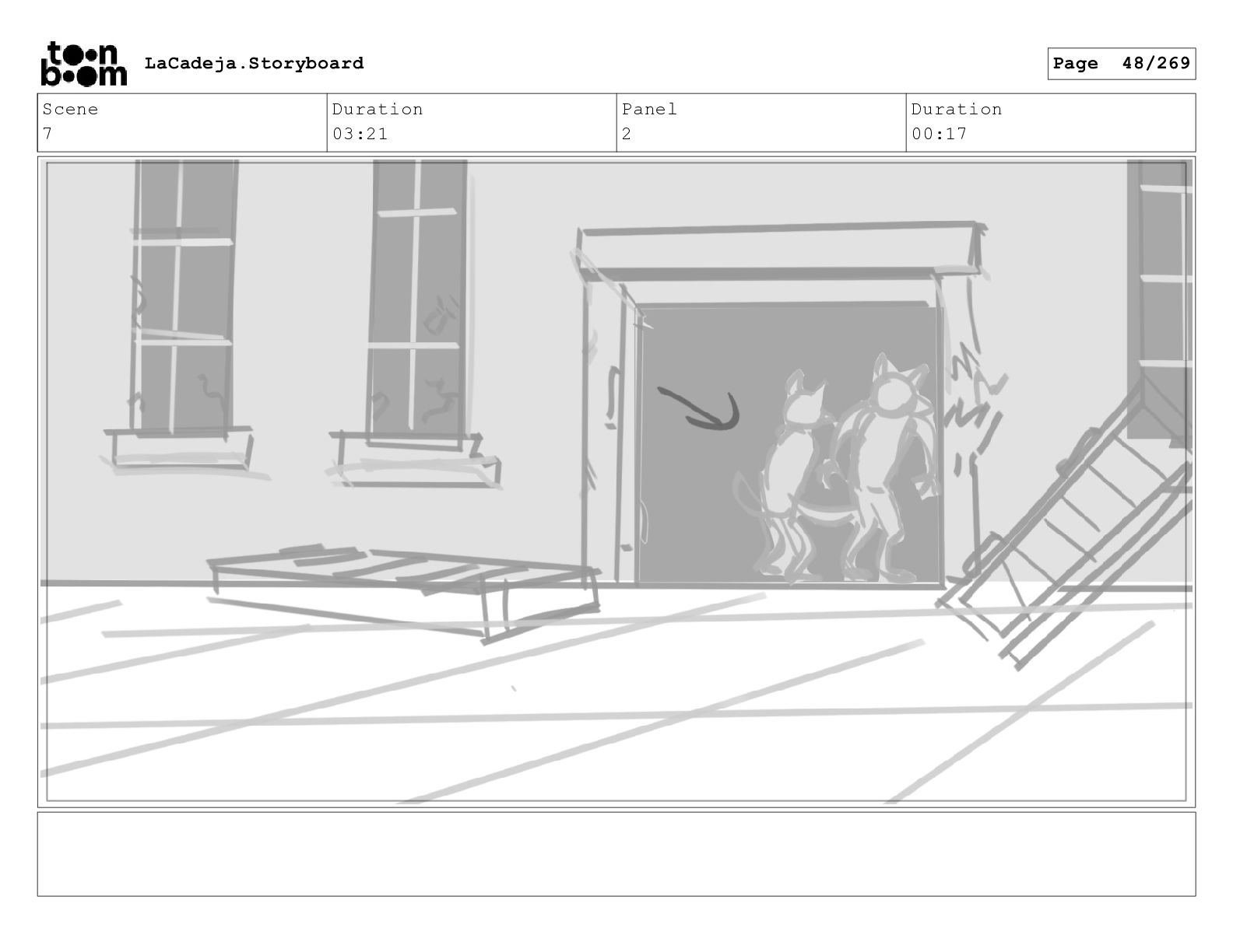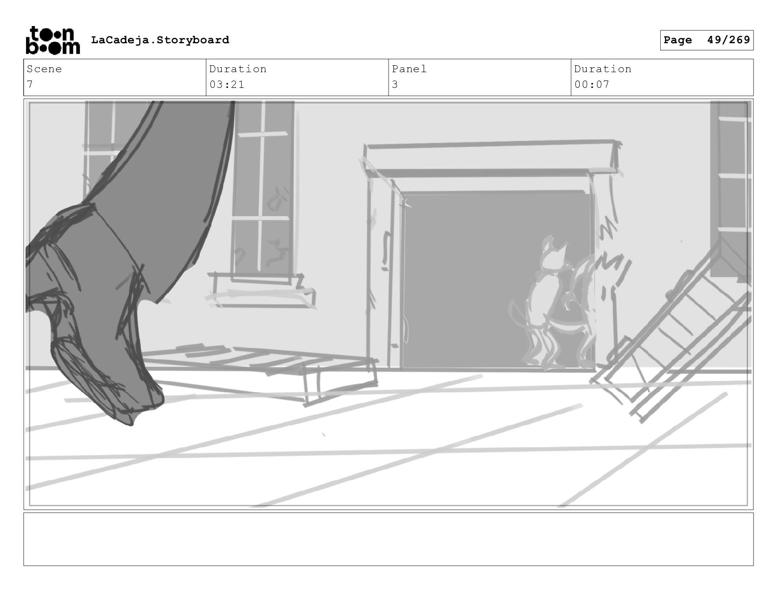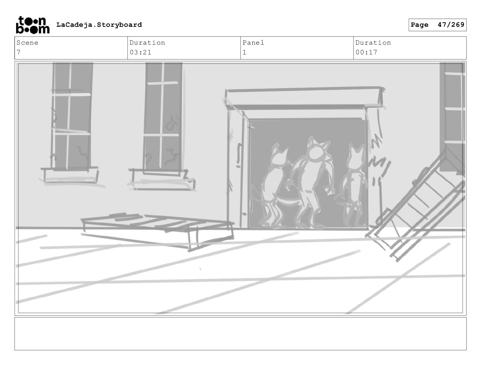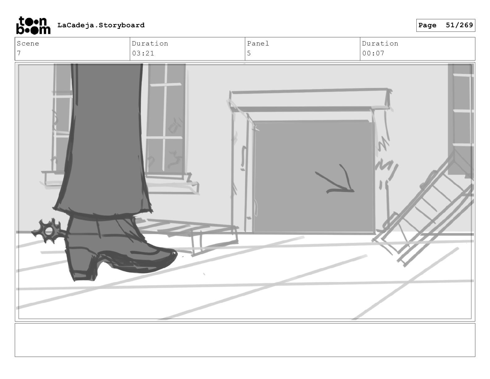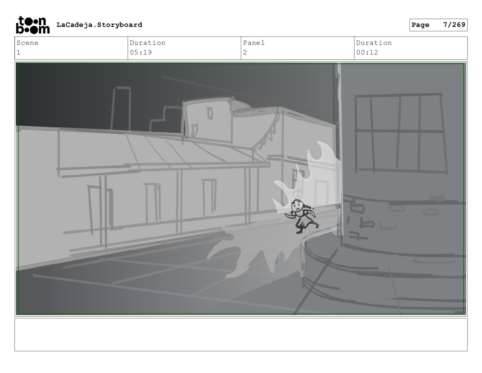 Scene 1 Duration 05:19 Panel 7 Duration 00:05 LaCadeja.Storyboard Page
