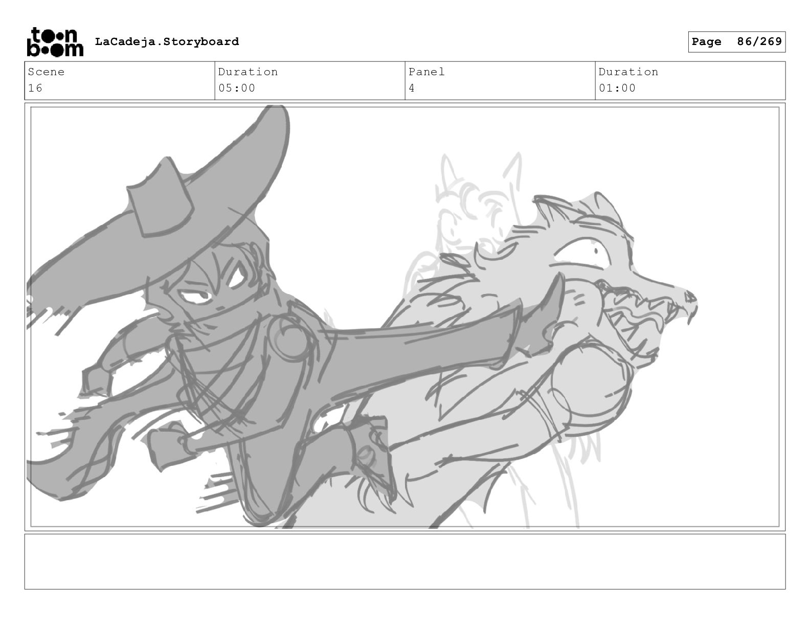 Scene 34 Duration 04:09 Panel 1 Duration 00:16 LaCadeja.Storyboard Page