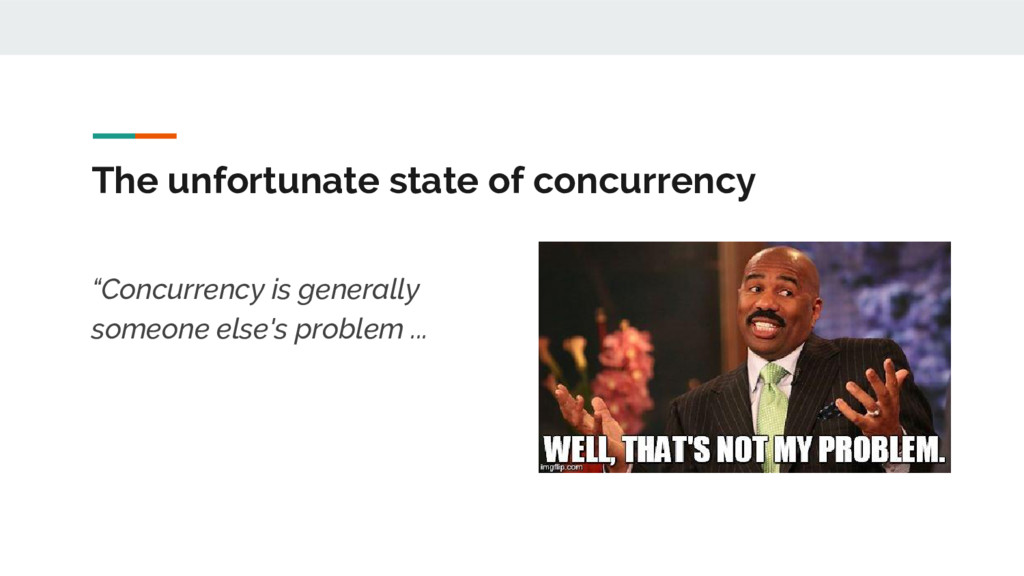functional programming talk • Talk on concurrency models (implementation) which uses a few concurrency patterns (futures, async.. await, actors, callbacks). We are not going to discuss patterns in detail. • The concepts discussed are language and OS agnostic • Feel free to stop me at any time for questions