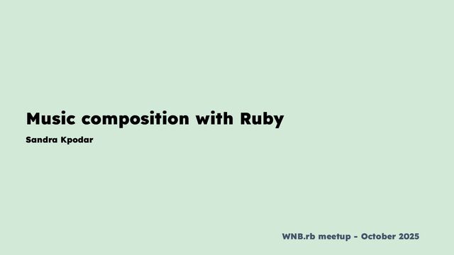 What if I told you that you could use your knowledge of Ruby to create sounds even songs? In this talk, I will show you how you can go from coding a beat to a full song whether you are a musician or not.