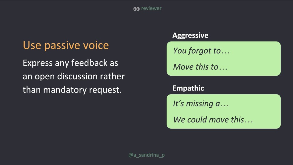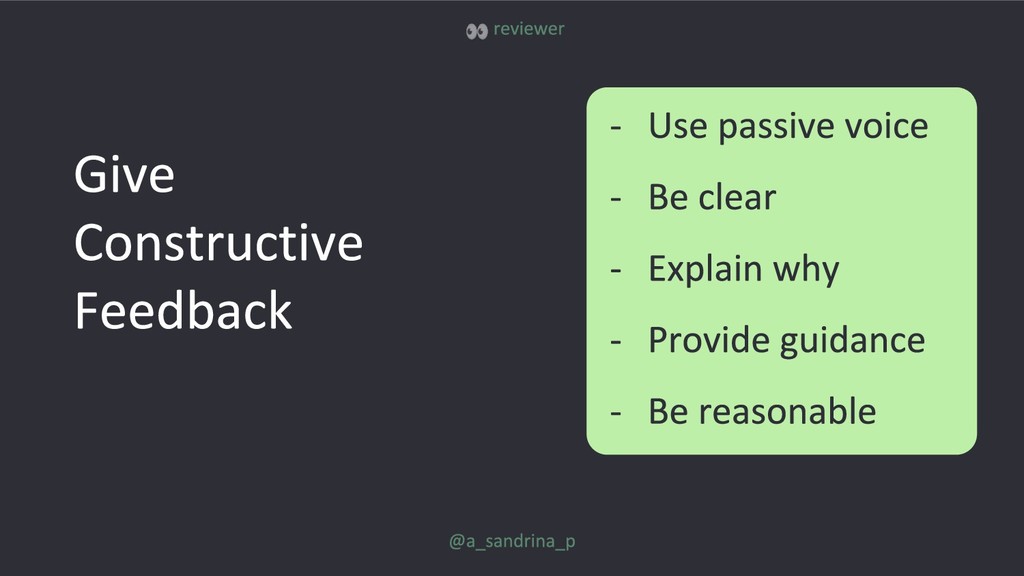 You can read the full article with more tips at Smashing Magazine: https://www.smashingmagazine.com/2019/06/bringing-healthy-code-review-mindset/