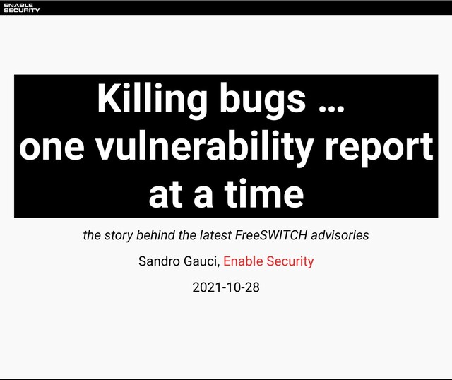 Sandro tells the story of how he and his security team came across vulnerabilities in FreeSWITCH, verified the security issues in lab environment, reported them upstream and finally worked with the FreeSWITCH developers to get them fixed. We will explore where security testing has value, that software can greatly benefit from this process of vulnerability reporting, fixing, etc., and also talk a bit about the process, and help you to better understand the impact of such vulnerabilities.
