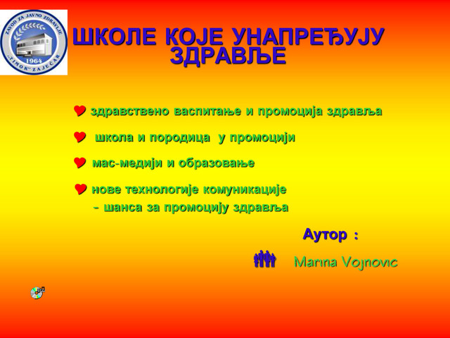 мреже здравих школа у пилот школама које реализују приоритетне програме из области здравих стилова живота , правилне исхране , физичке активности , спречавања злоупотребе дувана , алкохола и психоактивних супстанци , репродуктивног и менталног здравља.