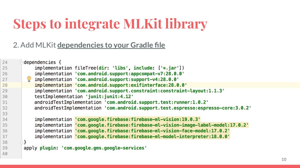 This is a presentation on how mobile applications can benefit by doing ML on the device itself as opposed to in the cloud. MLKit is a library introduced by Google for this purpose. This presentation also provides brief code examples of integrating MLKit in Android application.