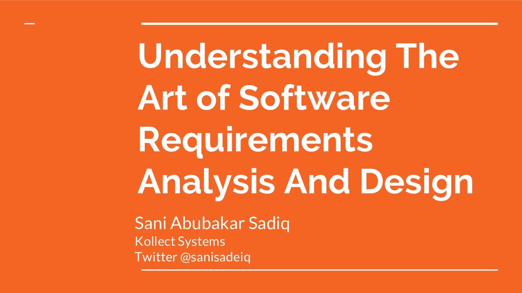 This is a presentation for Code Pyramid October 2018 meetup. In it, I try to simplify the art of gathering, analyzing and designing software requirements.