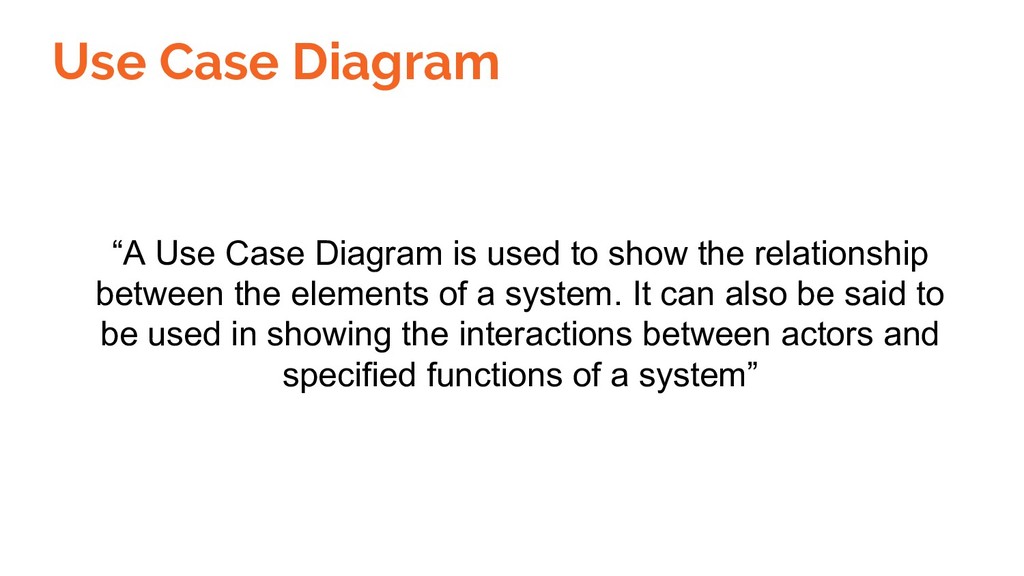 show the relationship between the elements of a system. It can also be said to be used in showing the interactions between actors and specified functions of a system”
