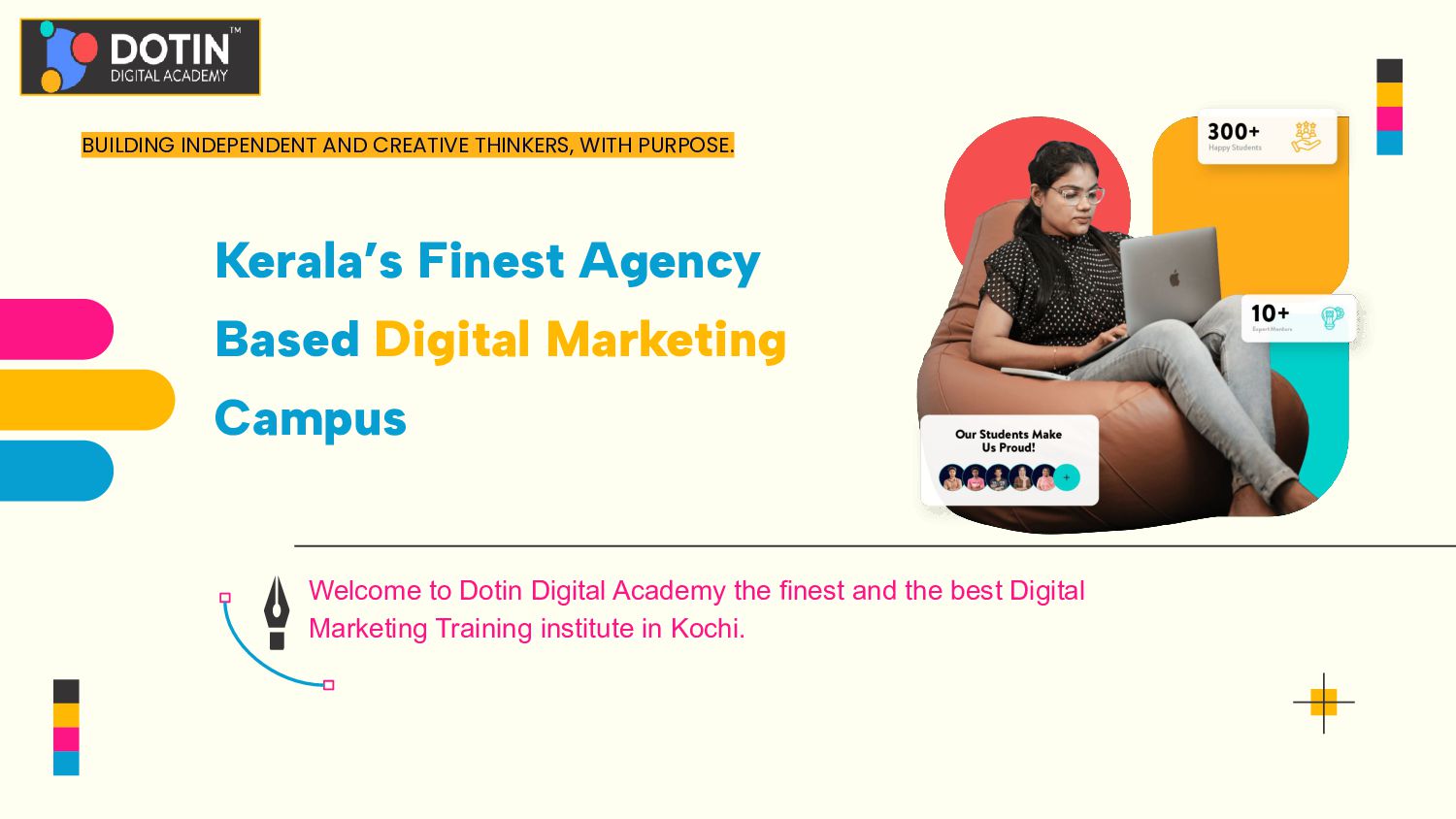 Digital Marketing Training institute in Kochi. BUILDING INDEPENDENT AND CREATIVE THINKERS, WITH PURPOSE. Kerala’s Finest Agency Based Digital Marketing Campus