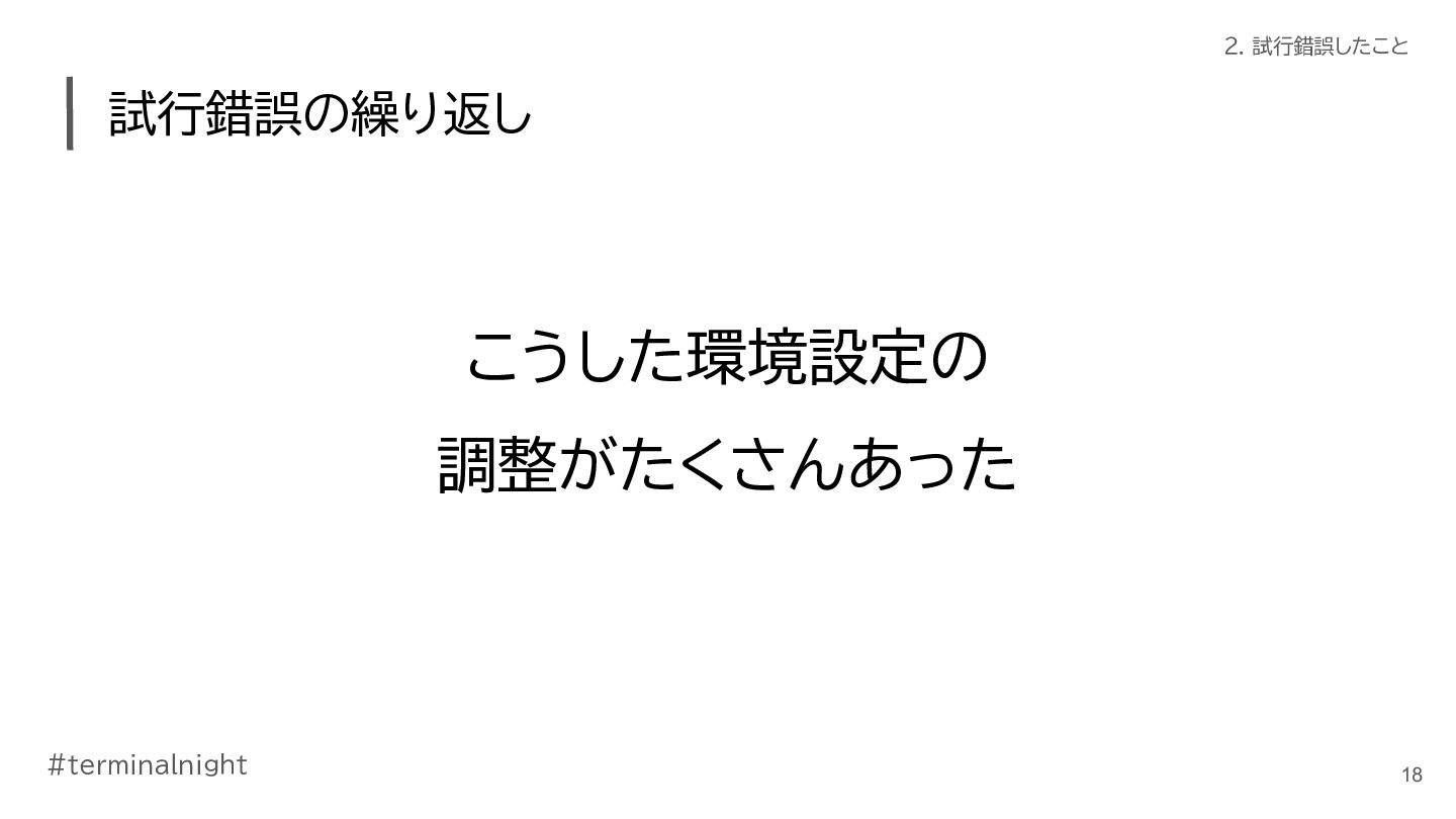 Terminal Night #2 での発表資料です。