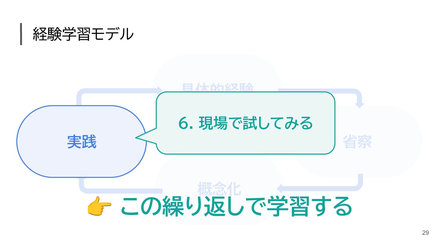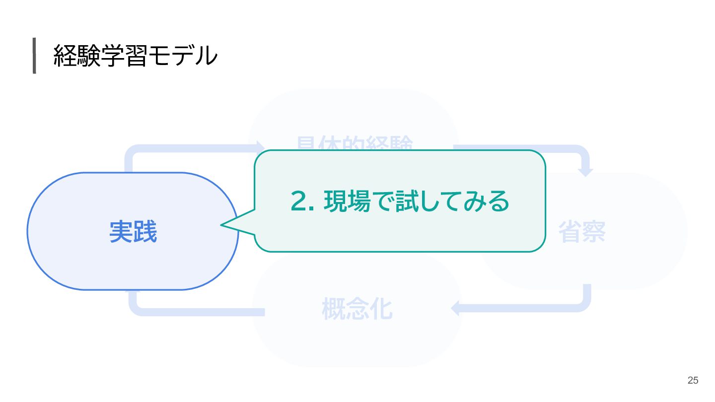 経験学習とは? コルブの経験学習モデル、サイクル、具体例 - カオナビ人事用語集 https://www.kaonavi.jp/dictionary/learning-by-doing/
