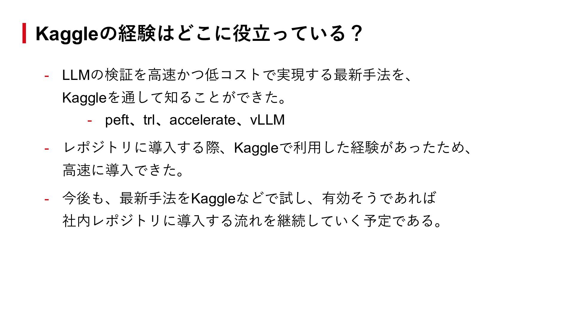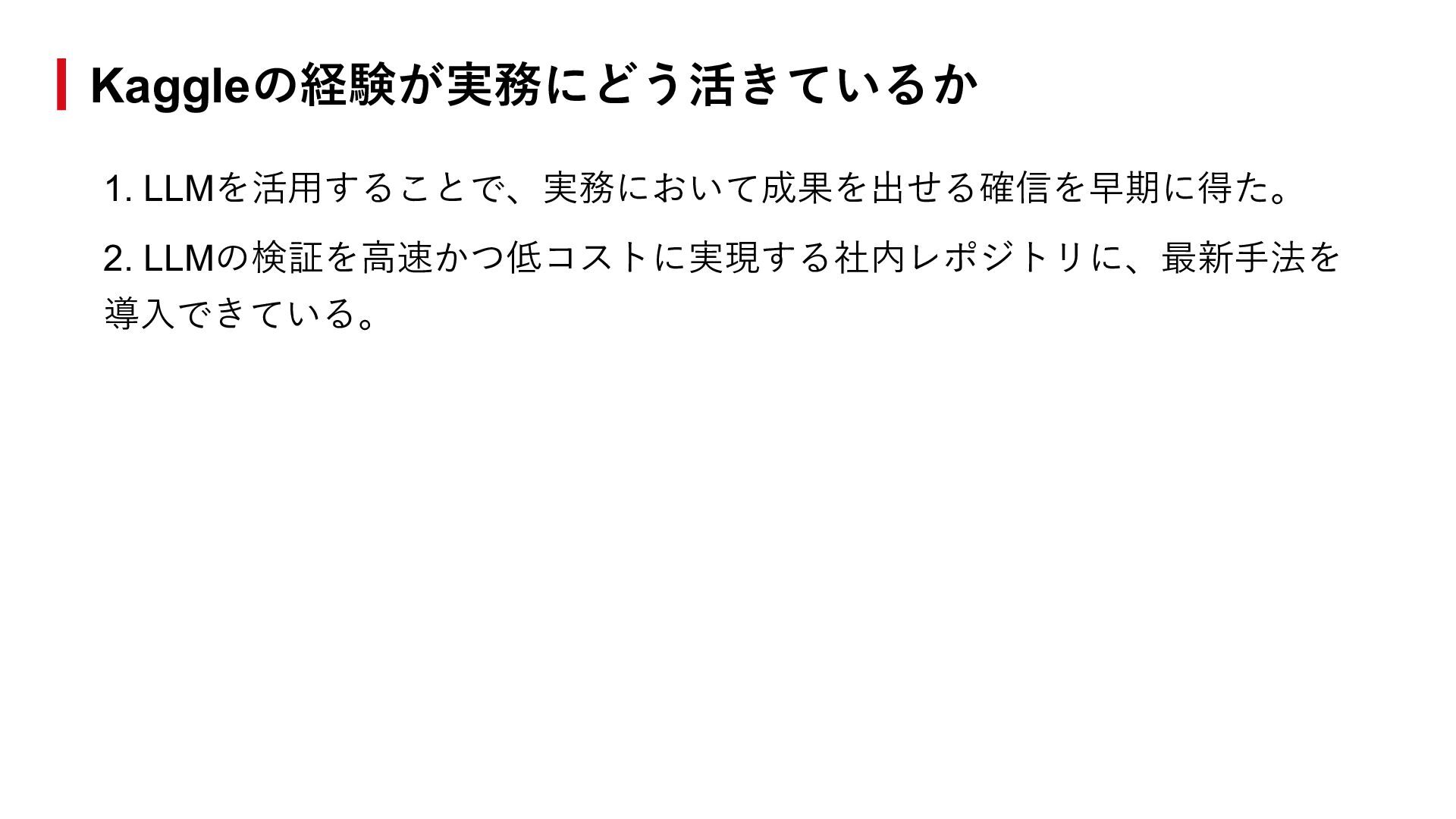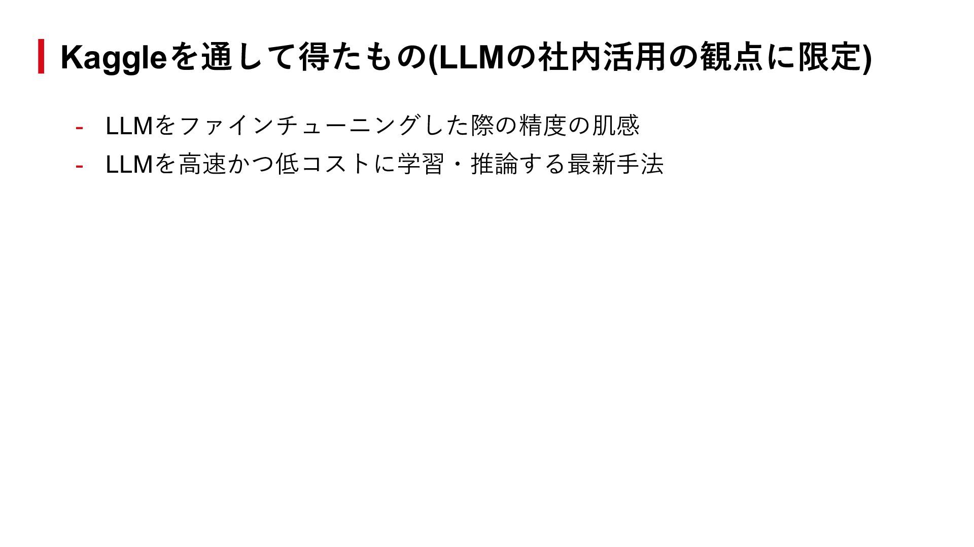 ■ イベント LLM性能改善の実践知 - Kaggleでの学びを現場に活かす思考法 https://findy.connpass.com/event/383571/