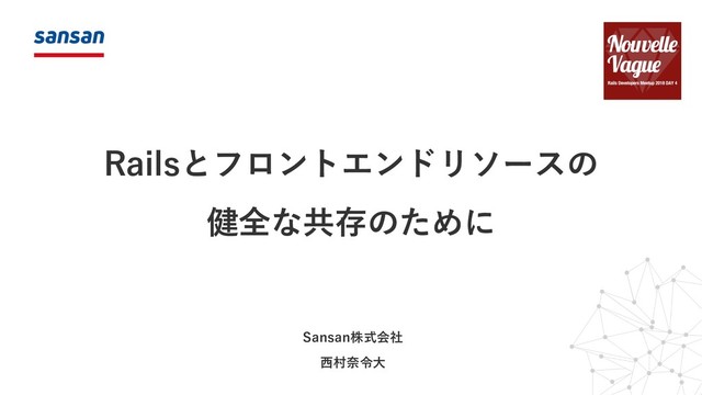 ■登壇概要 タイトル:Railsとフロントエンドリソースの健全な共存のために 登壇者:Eight事業部 Androidエンジニア 西村 奈令大