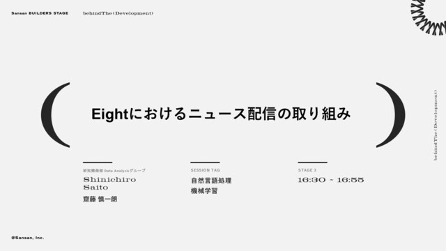 ■登壇概要 タイトル:Eightにおけるニュース配信の取り組み 登壇者:技術本部 DSOC 研究開発部 Data Analysisグループ 研究員 齋藤 慎一朗