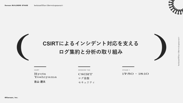 ■登壇概要 タイトル: CSIRTによるインシデント対応を支えるログ集約と分析の取り組み 登壇者:技術本部 CSIRTグループ セキュリティエンジニア 吉山 遼太