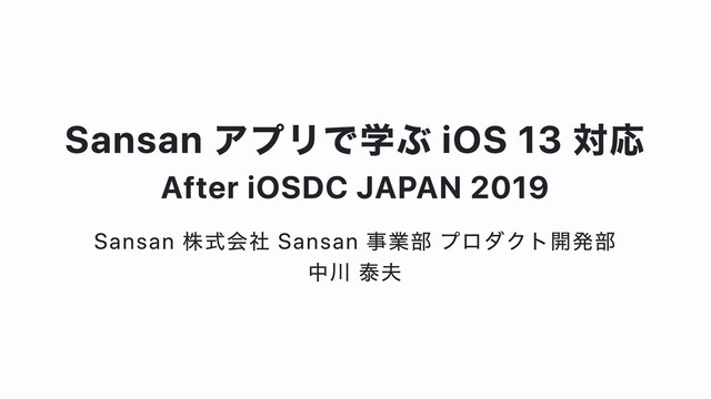 ■登壇概要 タイトル: Sansan アプリで学ぶ iOS 13 対応 登壇者: Sansan事業部 プロダクト開発部 中川 泰夫
