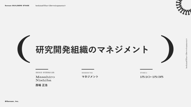 ■登壇概要 タイトル:研究開発組織のマネジメント 登壇者:技術本部 DSOC 研究開発部 部長 西場 正浩