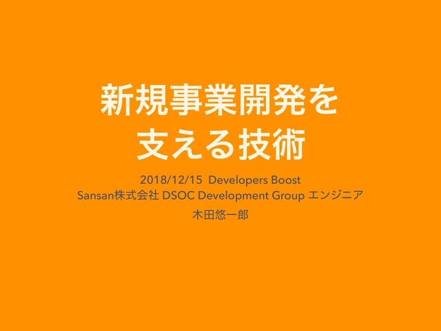 ■登壇概要 タイトル:新規事業を支える技術 登壇者:DSOC Development Group 木田悠一郎
