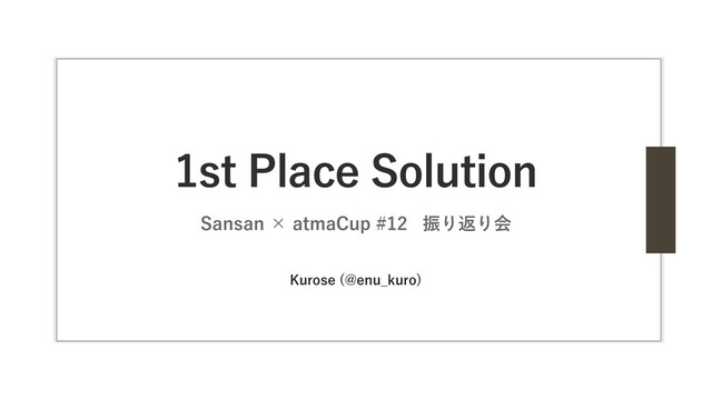 ■登壇概要 タイトル:1st Place Solution 発表者: Kurose (@enu_kuro) さん