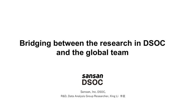 to bridge between DSOC and the global team • Recognize and respect diversity > Multinational organisation > Different working time zones > Distinct focuses and mindsets • Break down language barriers > Japanese + English • Create more shared spaces > Workplace SNS Groups, Weekly Meetings, File sharing space... • Make the most of the knowledge mix > Multi-angle thinkings • Build trust and encourage friendships > CTO (GAME) night, Global lunch meeting, Katachi discussion...