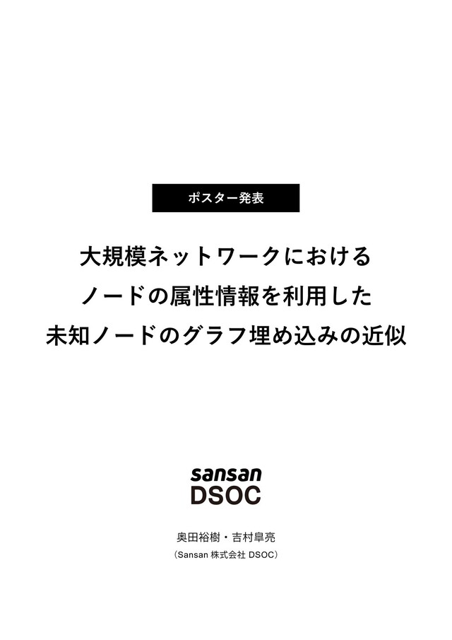 ■登壇概要 タイトル: 大規模ネットワークにおけるノードの属性情報を利用した未知ノードのグラフ埋め込みの近似