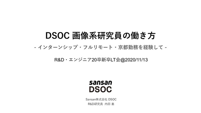 ■登壇概要 タイトル:DSOC 画像系研究員の働き⽅:インターンシップ・フルリモート・京都勤務を経験して 発表者: DSOC R&D研究員 内田 奏