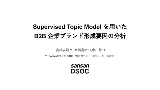 Supervised Latent Dirichlet allocation (sLDA) を⽤いる(Blei, D. M., & McAuliffe, J. D. (2009). Advances in Neural Information Processing Systems 20 - Proceedings of the 2007 Conference, 1‒22., 右図) • ⽂書ラベル(連続値)に対する予測精度を最⼤化するよ うに⽂書の潜在トピックを定める⼿法 (Blei, D. M., & McAuliffe, J. D. (2009). Advances in Neural Information Processing Systems 20 - Proceedings of the 2007 Conference, 1–22.) 企業ブランド印象の要因 • ブランド印象評点 (0-11) を⽬的変数とし、 ⾃由記述⽂から、レーティングと関連のある 潜在トピックを抽出する