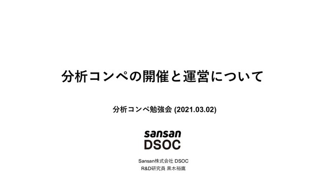 ■登壇概要 タイトル:分析コンペの開催と運営について 発表者: DSOC R&D研究員 黒木 裕鷹