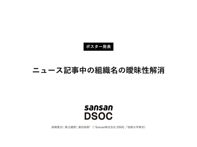 ■登壇概要 タイトル:ニュース記事中の組織名の曖昧性解消 発表者: DSOC 研究開発部 Data Analysis Group 高橋 寛治