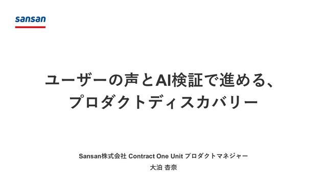 ■ 発表者 Contract One Unit プロダクトグループ 大泊 杏奈