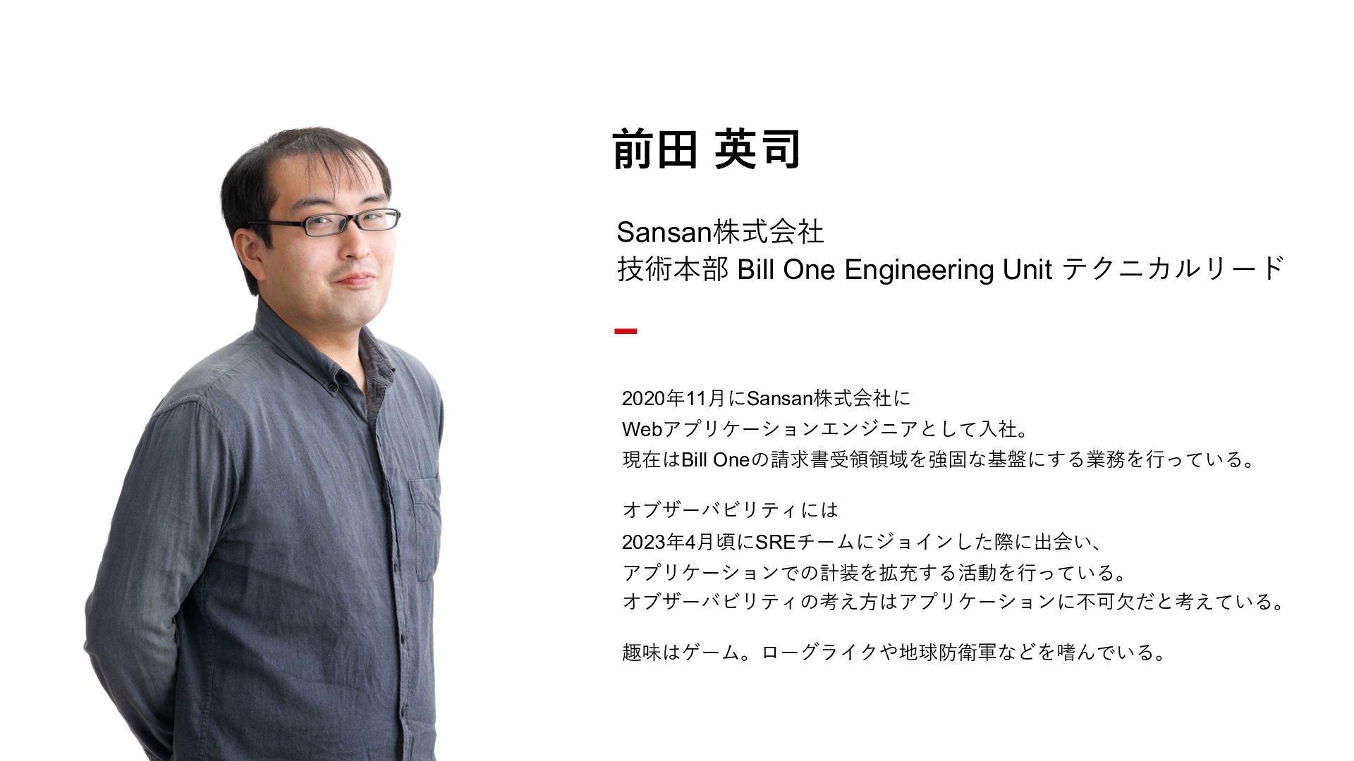 ■ 発表者 技術本部 Bill One Engineering Unit テクニカルリード 前田 英司