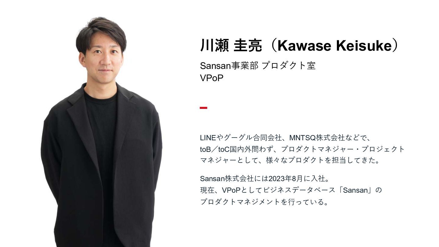 ■ 発表者 Sansan事業部 プロダクト室 VPoP 川瀬 圭亮